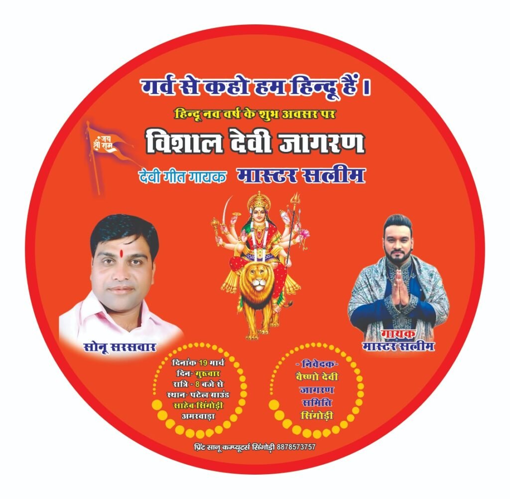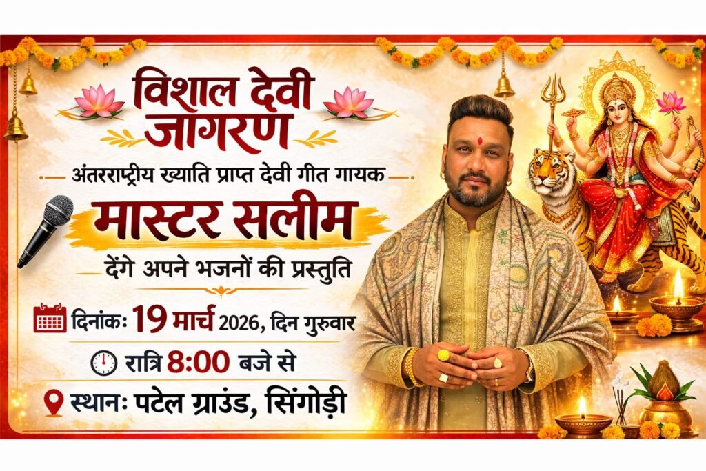 सिंगोड़ी:– 6 वर्षों के लंबे अंतराल के बाद सिंगोड़ी में फिर गूंजेंगे भक्ति के सुर, हिंदू नववर्ष पर माँ वैष्णो देवी जागरण समिति सिंगोड़ी के तत्वाधान में एक दिवसीय देवी गीत संध्या में मास्टर सलीम बिखेरेंगे भजनों का जादू। वही विभिन्य धार्मिक आयोजनों के लिए विख्यात साहेब सिंगोड़ी एक बार फिर भक्ति के रंग में सराबोर होने के लिए तैयार है। समिति के तत्वाधान में इस वर्ष हिंदू नववर्ष के अवसर पर एक विशाल देवी जागरण का आयोजन किया 19 मार्च को होने जा रहा है। इस संबध में समिति अध्यक्ष एवं कार्यक्रम संयोजक सोनू सरसवार ने बताया कि सिंगोड़ी की पहचान बन चुका यह देवी जागरण पिछले 16 वर्षों से निरंतर आयोजित होता आ रहा था। हालांकि वर्ष 19 के बाद कोरोना महामारी और प्रशासनिक प्रतिबंधों के कारण पिछले 6 वर्षों से इस पर विराम लगा हुआ था। इस वर्ष चैत्र शुक्ल प्रतिपदा गुड़ी पड़वा के शुभ अवसर पर इस परंपरा को पुनः पूरी भव्यता के साथ शुरू किया जा रहा है।*