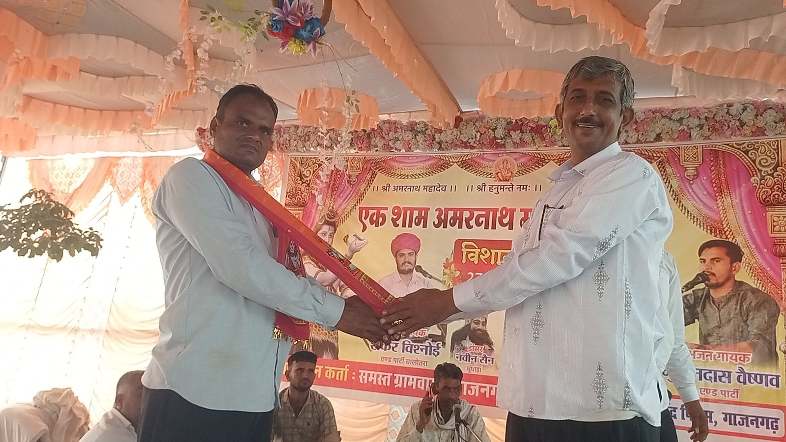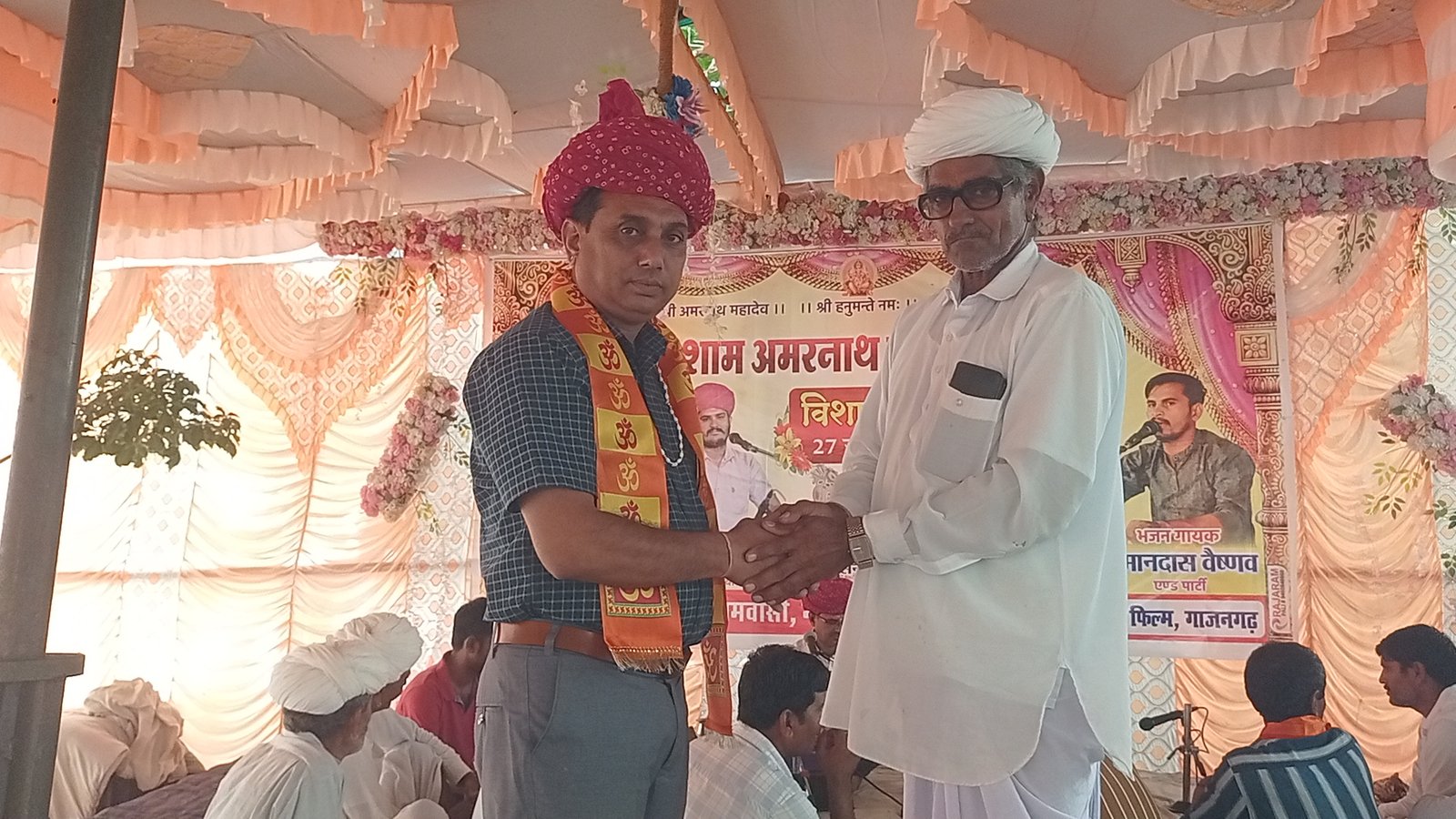 जी एन सुभाष चौधरी, वीडिओ श्याम सिंह बिश्नोई, खारड़ा जीएसएस उपाध्यक्ष शंकरलाल फुलवारीया, वार्ड पंच भाना राम, मांगीलाल मेघवाल,उदा राम मेघवाल का ग्राम वासियों द्वारा डुप्टा व साफा पहनाकर स्वागत किया गया। महाप्रसादी के लाभार्थी जगाराम सोलंकी, स्वागत के लाभार्थी नेमाराम पुत्र पुनाराम भूरिया, चाय कॉपी के लाभार्थी नेनाराम पदमाराम भूरिया, भामाशाह महादेव मंदिर के जिणोद्वार व भजन कलाकारों के लाभार्थी देदाराम पटेल सोलंकी , लक्ष्मण भूरिया, रुपाराम औड, मानाराम औड, लालाराम ओड, ढलाराम काग, कानदास वैष्णव, मोहनलाल कड़,घीसुदास वैष्णव, जगदीश कड़ ,पुकाराम सोलंकी, शिवाराम सोलंकी, लुंबाराम सोलंकी, अशोक सहित सभी भामाशाहों का ग्रामवासीयो द्वारा स्वागत किया गया बाद में एक पौधा मां के नाम पौधारोपण किया गया। इस मौके पर कार्यकर्ता ओम जांगिड़ भेराराम सोलंकी, हड़माना राम ओड, दलाराम सोलंकी सहित सैकड़ों लोग मौजूद रहे। मंच संचालन अश्विनी कुमार ने किया।