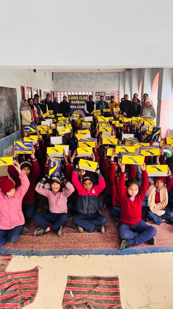 “आओ किसी का सहारा बने” मुहिम के तहत लायंस क्लब नरवाना ने बांटे जूते व मोज़े