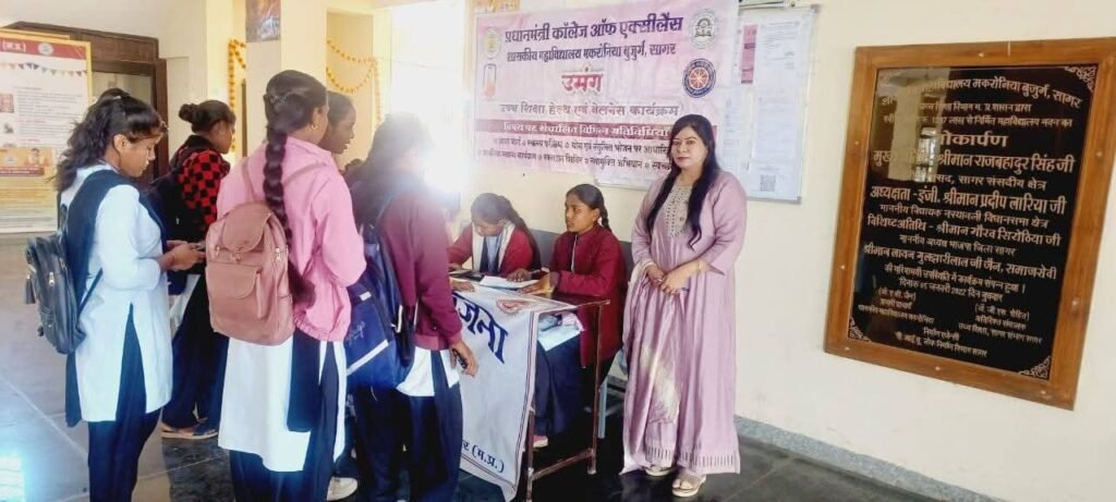 सागर/वंदे भारत लाइव टीवी न्यूज रिपोर्टर सुशील द्विवेदी 8225072664 * प्रधानमंत्री कॉलेज ऑफ एक्सीलेंस शासकीय महाविद्यालय मकरोनिया बुजुर्ग में राष्ट्रीय सेवा योजना के तत्वावधान में उमंग हेल्थ एंड वेलनेस कार्यक्रम एवं नेशनल टास्क फोर्स (NTF) के अंतर्गत आभा (आयुष्मान भारत हेल्थ अकाउंट) बनाने हेतु विशेष शिविर का आयोजन किया गया। शिविर प्रभारी एवं कार्यक्रम संयोजक डॉ. रश्मि यादव ने उपस्थित विद्यार्थियों को उमंग हेल्थ एंड वेलनेस कार्यक्रम तथा एनटीएफ के उद्देश्यों की जानकारी दी।