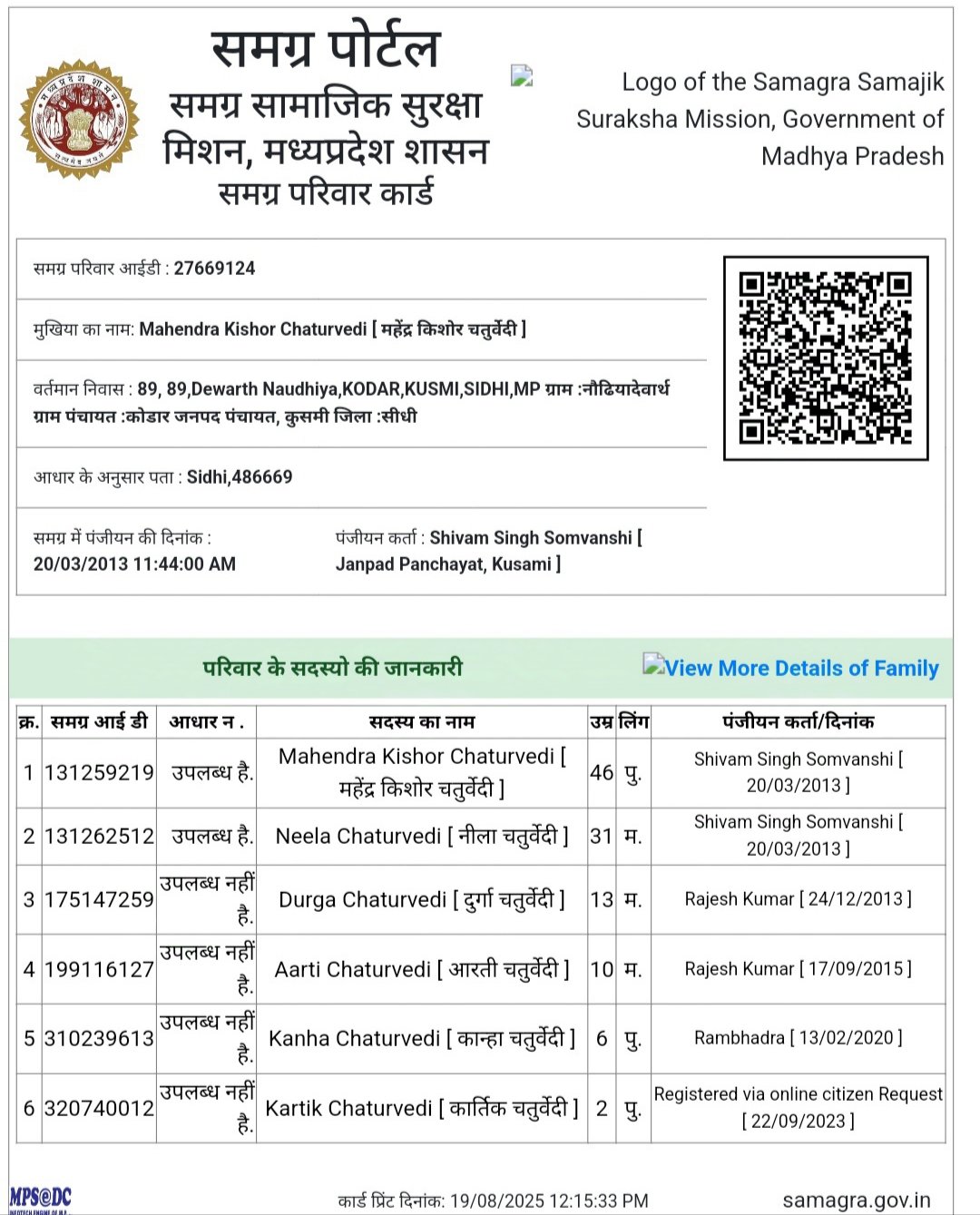 महेंद्र किशोर की परिवार आईडी