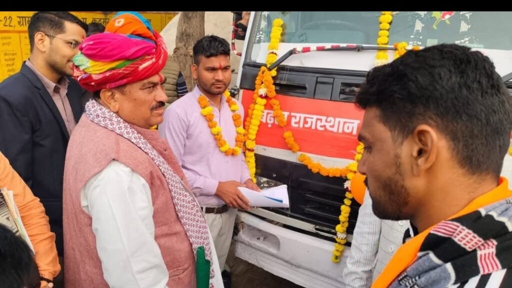 कठूमर विधानसभा क्षेत्र के विधायक रमेश खिंची द्वारा सरकार की जन कल्याणकारी योजनाओं के दो वर्ष पूरे होने पर रथयात्रा को हरी झंडी दिखाकर प्रारंभ किया गया इस अवसर पर भाजपा मंडल के कठूमर के सभी कार्यकर्ता उपस्थित रहे नागरपालिया चेयरमैन शेरसिह मीणा,पूर्व मंडल अध्यक्ष सुनिल बजाज,खेड़ली से संजय गीजगाड़िया राजस्थान चीफ वतन केसरी दैनिक समाचार एवम ब्रह्मण महासभा पदेश उपाध्यक्ष मनोहरलाल शर्मा,पंकज कटारा,भोला रेटा , राजेश दुधेरी,के अलावा सभी कार्यकर्ताओं ने इस अवसर पर अपनी जिम्मेदारी निभाई,राजस्थान मुख्यमंत्री भजनलाल शर्मा ने इस अभियान को एक रथयात्रा के माध्यम से पूरे प्रदेश भर में जन जागृति एवम विभिन्न जन कल्याणकारी योजनाओं के बारे में जानकारी देकर जागरूक करने के लिए ये प्रारंभ किया गया है जिससे सभी प्रदेश वासियों को इसकी सही जानकारी और उचित लाभ प्राप्त हो सके