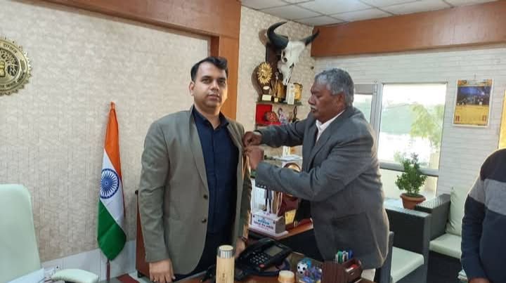 मंडला कलेक्टर को लगाया गया शास्त्र सेना झंडा दिवस बैज वीर सैनिकों सम्मान का संदेश