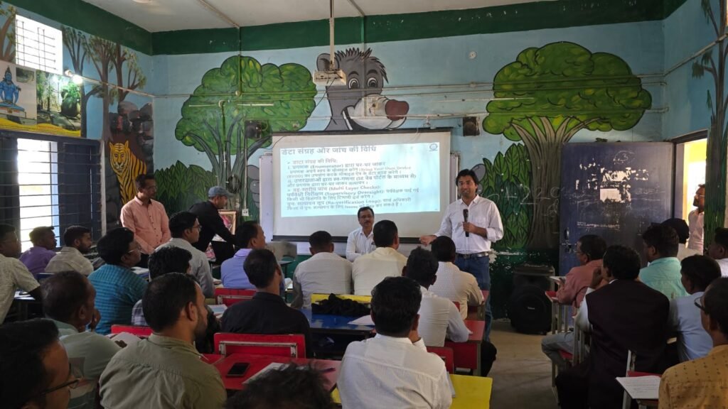 सूरजपुर/ कलेक्टर श्री एस. जयवर्धन एवं उप जिला निर्वाचन अधिकारी द्वारा आज लटोरी तहसील स्थित शासकीय उच्चतर माध्यमिक शाला में आयोजित प्रगणकों के प्रशिक्षण कार्यक्रम का निरीक्षण किया गया। यह प्रशिक्षण आगामी 8वीं जनगणना के सफल संचालन के लिए आयोजित किया जा रहा है।