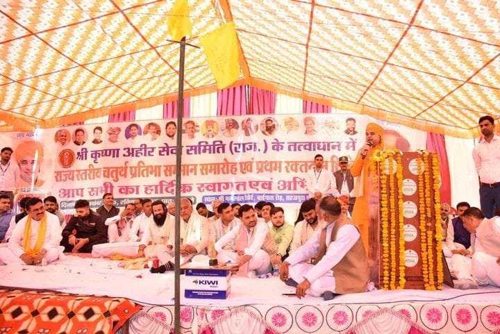 आज अलवर के कस्बा खेड़ली में श्री गोपाल अहिर सेवा समिति द्वारा ,रक्तदान शिविर एवम राष्ट्रीय पत्रकारिता दिवस पर राज्य स्तरीय चतुर्थ प्रतिभा सम्मान समारोह का आयोजन हुआ इस अवसर पर तिजारा विधायक बाबा बालक नाथ,कठूमर विधायक रमेश खिंची ,राजस्थान चीफ मनहोरा लाल शर्मा , वतन केसरी दैनिक समाचार ,का अध्यक्ष संजय गीजगाड़िया,माडल अध्यक्ष, शैलेंद्र चौहान ,एवम समस्त भाजपा कार्यकर्ताओं द्वारा 51 किलो की पुष्प माला एवम अंग वस्त्र भेट कर स्वागत किया गया पत्रकार जगत में महोहत्र लाल शर्मा वतन केसरी दैनिक समाचार,एवम अन्य क्षेत्रीय पत्रकारो को सम्मानित किया गया साथ ही मानव समाज को बासुदेव कुट्टुब की विचारधारा वाले महान विभूतियों द्वारा रकदान किया गया