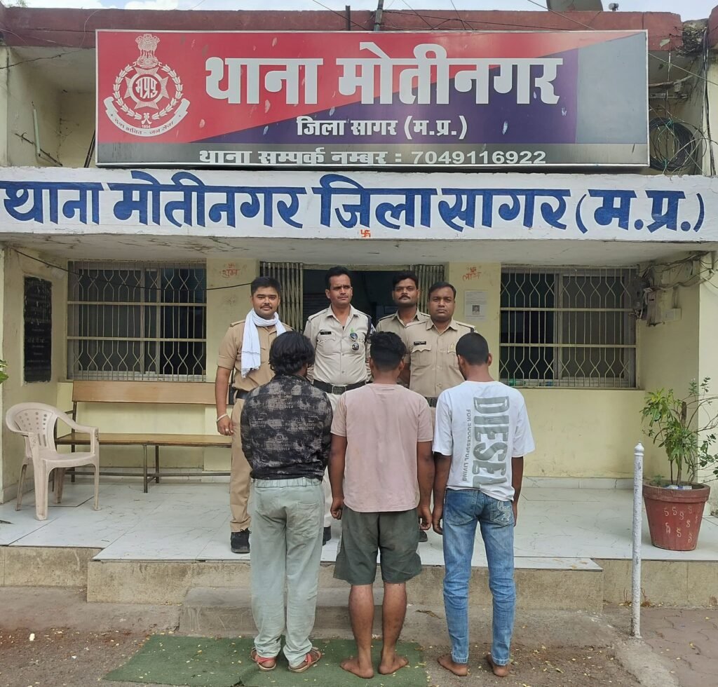 सागर। वंदे भारत लाइव टीवी न्यूज रिपोर्टर सुशील द्विवेदी 8225072664*दिनांक 30.04.2026 को मोतीनगर पुलिस ने शहर में शांति और कानून-व्यवस्था को प्राथमिकता देते हुए एक बड़ी कार्रवाई को अंजाम दिया है। पुलिस टीम ने उन असमाजिक तत्वों के खिलाफ सख्त कदम उठाया है जो बिना किसी कारण के शहर का माहौल खराब करने और अपराध को अंजाम देने की फिराक में घूम रहे थे। गस्त के दौरान पुलिस को सूचना मिली कि कुछ व्यक्ति संदिग्ध परिस्थितियों में घूम रहे हैं। तत्परता दिखाते हुए मोतीनगर पुलिस ने तुरंत दबिश दी और निम्नलिखित 3 व्यक्तियों को हिरासत में लिया।लकी कोरी (पिता बालकिशन कोरी, उम्र 23 वर्ष, निवासी- रंगमहल के पास, इतवारी टोरी),निखिल (पिता मनोज बंशल, उम्र 21 वर्ष, निवासी- ग्यादीन तिगड्डा, मोतीनगर),सोनू (पिता राजकुमार रजक, उम्र 23 वर्ष, निवासी- संत कबीर राम वार्ड, मोतीनगर) इन आरोपियों के विरुद्ध धारा 170 बीएनएसएस (BNSS) के तहत निरोधात्मक कार्रवाई करते हुए उन्हें न्यायालय में पेश किया गया। न्यायालय के आदेशानुसार, सभी आरोपियों को जेल वारंट प्राप्त होने के उपरांत केंद्रीय जेल सागर दाखिल कर दिया गया है। मोतीनगर पुलिस ने स्पष्ट किया है कि शहर में शराब पीकर उत्पात मचाने, राहगीरों को परेशान करने या किसी भी प्रकार की गुंडागर्दी करने वाले असमाजिक तत्वों को बख्शा नहीं जाएगा। पुलिस सोशल मीडिया और खुफिया सूत्रों के माध्यम से ऐसे तत्वों पर पैनी नजर रख रही है और आगे भी इसी प्रकार की सख्त कार्रवाई जारी रहेगी।सराहनीय कार्य करने वाली पुलिस टीम:इस सफल ऑपरेशन को अंजाम देने वाली टीम में शामिल अधिकारियों और कर्मचारियों की भूमिका सराहनीय रही:निरीक्षक जसवंत राजपूत (थाना प्रभारी, मोतीनगर) स.उ.नि. माधव सिंह,प्र.आर. 227 बालकृष्ण चौबे,प्र.आर. 141 नदीम शेख,प्र.आर. 286 प्रदीप,आरक्षक विनीत शामिल रहे।