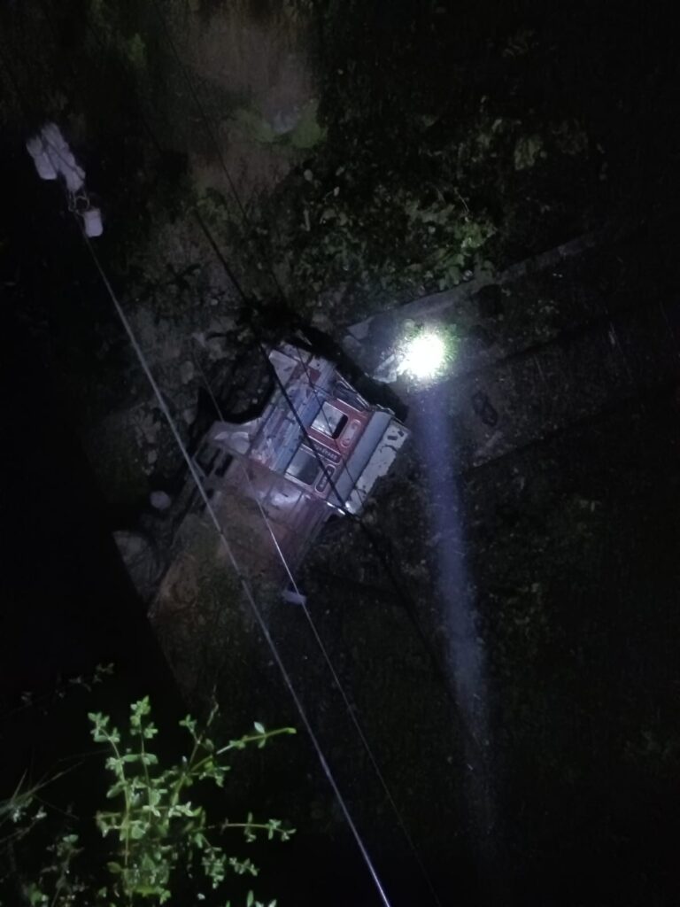 खलारी के डकरा में पुल से ट्रक गिरा, चालक गंभीर रूप से हुआ घायल।