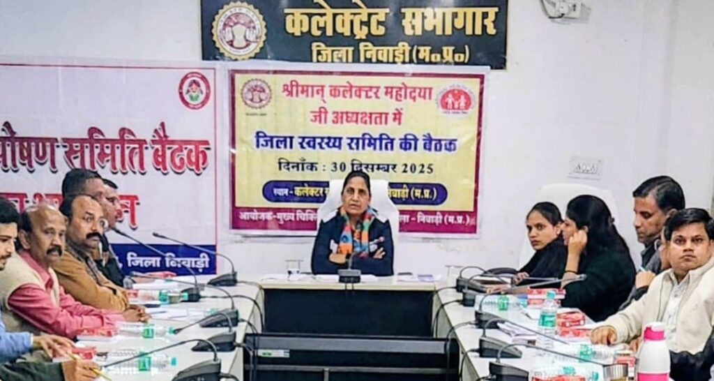 निवाड़ी। जिले में स्वास्थ्य सेवाओं को सुदृढ़ करने एवं पोषण स्तर में सुधार लाने के उद्देश्य से कलेक्टर श्रीमती जमुना भिडे की अध्यक्षता में कलेक्ट्रेट सभागार में स्वास्थ्य समिति एवं जिला पोषण समिति की महत्वपूर्ण बैठक आयोजित की गई।