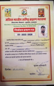समाज बंधुओं ने नव निर्वाचित अध्यक्ष चंपालाल जांगिड़ को बधाई दी और उम्मीद जताई कि उनके नेतृत्व में महा सभा तहसील स्तर पर और अधिक मजबूत होगी।