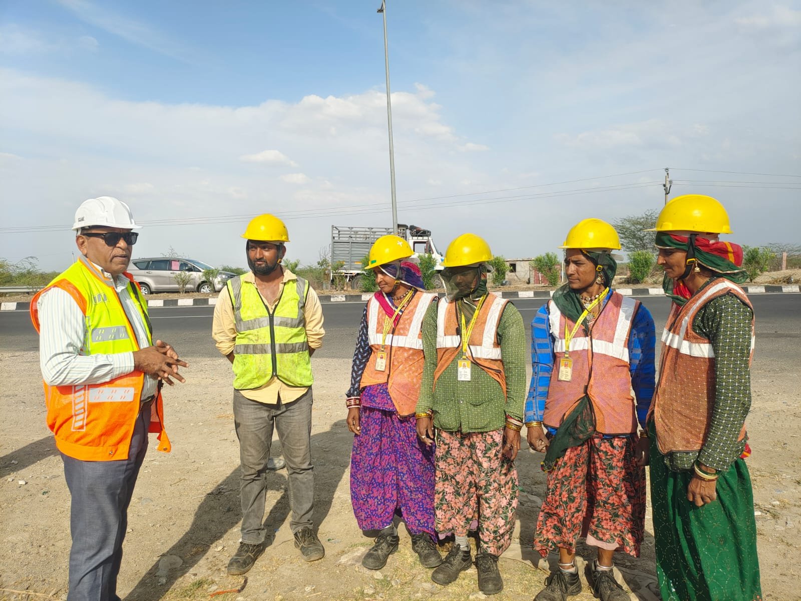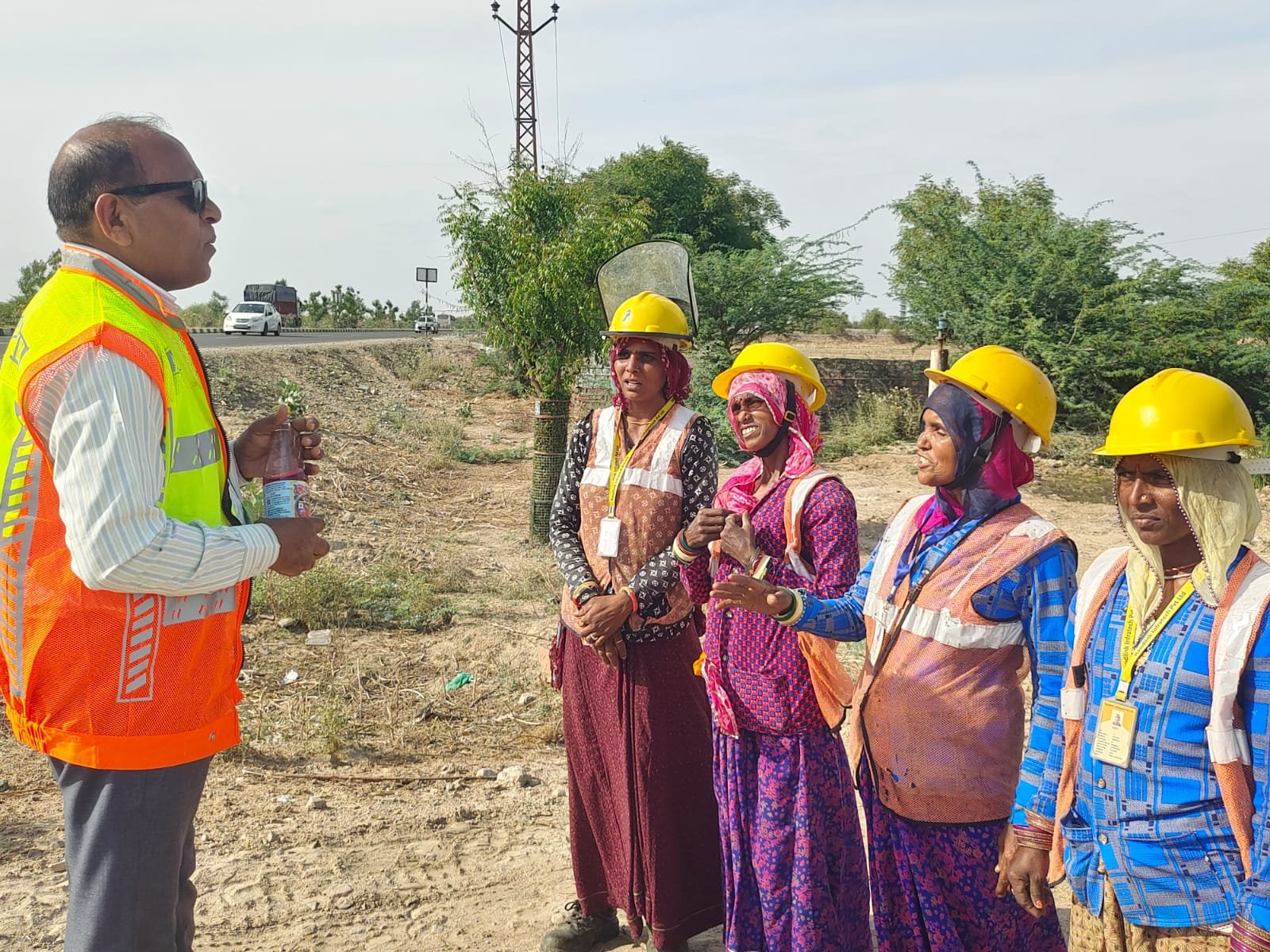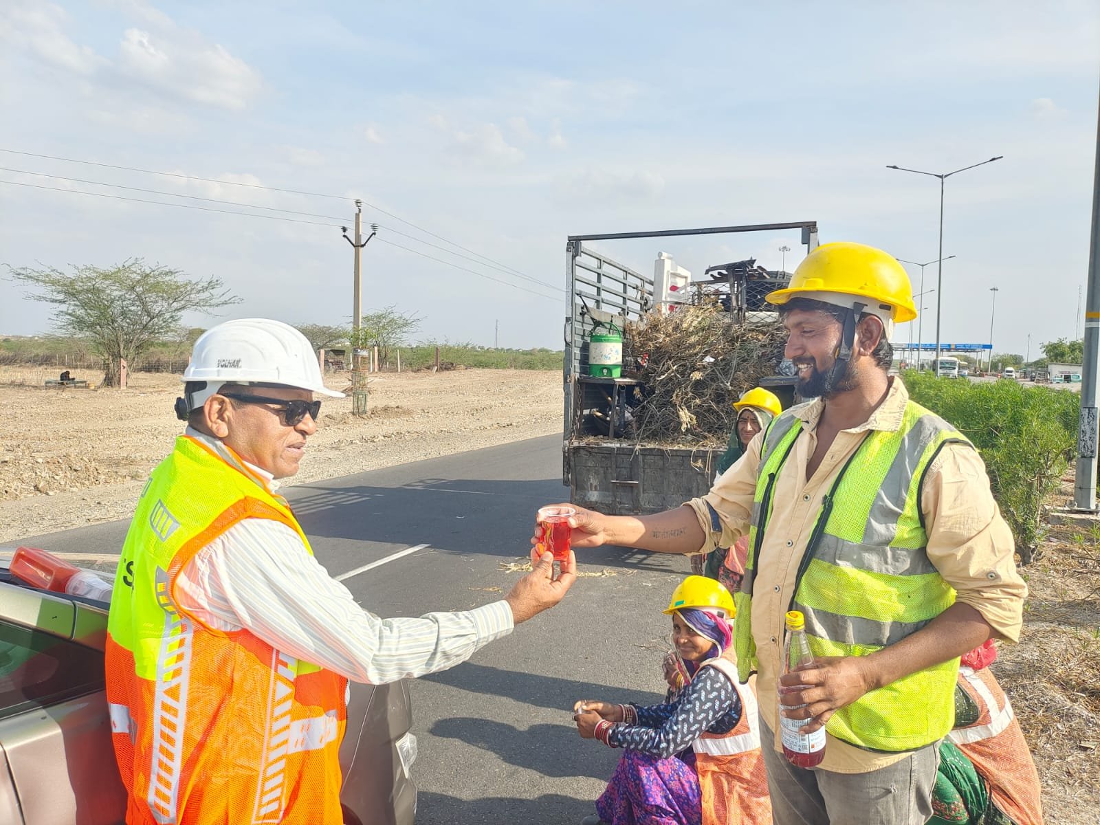 चिलचिलाती धूप में हाईवे पर कार्यरत श्रमिकों को ग्लूकोज एनर्जी ड्रिंक के पैकेट वितरित किए गए।