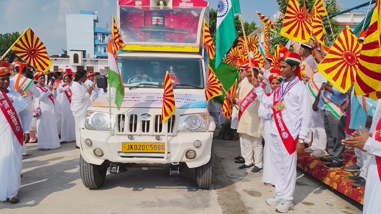 चुनार तहसील में होगा 90 दिवसीय आयोजन, गांव-गांव पहॅुचेगा भव्य रथ संस्था के वरिष्ठ राजयोगी ब्र.कु. पंकज दूबे के संयोजन एवं क्षेत्रीय निदेशिका राजयोगिनी ब्र.कु. सुरेन्द्र दीदी के निर्देशन और प्रबंधक राजयोगी ब्र.कु. दीपेन्द्र के प्रबंधन में यह अभियान चुनार तहसील के गांव-गांव तक पहॅुचेगा। संस्था द्वारा अभियान के दौरान सुदंर रथ के साथ संस्था के सदस्य गांव-गांव पहॅुचकर लोगों को नशा के विरूद्ध करेगें जागरूक । राष्ट्रीय स्तर पर माननीया राष्ट्रपति महोदया के द्वारा तो प्रदेश स्तर पर माननीय मुख्यमंत्री योगी जी के द्वारा हरी झण्डी दिखाकर आरम्भ किए गए इस अभियान के द्वारा समाज में एक नई जागृति आयेगी। मुख्य अतिथि के साथ विशिष्ट अतिथियों ने हरी झण्डी दिखाकर रथ को किया रवाना साथ नशा मुक्ति अभियान अभियान में शामिल भव्य सुंदर रथ को कार्यक्रम की अध्यक्षा, मुख्य अतिथि एवं विशिष्ट अतिथियों ने हरी झण्डी एवं परमात्म शिव का ध्वज़ प्रदान कर रवाना किया। अभियान में शामिल सुंदर रथ में एक ओर एल.ई.डी. बस्क्रीन लगी हुई है तो दूसरी ओर कुम्भकरण की भव्य चैतन्य प्रतिमा के साथ दिव्य संदेश युक्त साउण्ड सिस्टम जो कि नशा मुक्ति अभियान का विशेष आकर्षण रहेगा।