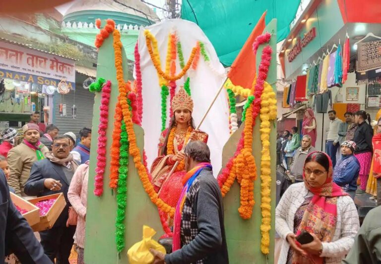 चुनार में निकाली गई भव्य शोभा यात्रा देशज दिवस पर सुरभि शोध संस्था द्वारा चुनार में देशज दिवस के अवसर पर सुरभि शोध संस्थान में एक शोभायात्रा निकाली गई | देशभक्ति के गीतों के गूंज के बीच निकाली इस यात्रा में लगभग 13 भारतीय राज्यों और नेपाल के हजारों बच्चों ने भाग लिया | यह शोभा यात्रा चुनार के किला ग्राउंड से शुरू होकर नगर के चौक बाजार, मैंन मार्केट और अग्रवाल कलेक्शन, से होते हुए मिश्रा क्लिनिक से बालू घाट होते हुए गंगा तट पर पहुंची | यात्रा में पहुंचे बच्चों द्वारा भारत ‘ माता की जय ‘ के नारों से वातावरण गूंज उठा | इस शोभा यात्रा के दौरान अग्रवाल कलेक्शन के प्रोपराइटर पंकज अग्रवाल और शिखर अग्रवाल ने हजारों प्रतिभागियों के लिए लंच पैकेट की व्यवस्था की | पंकज अग्रवाल ने इस अवसर पर पदाधिकारी को अंग वस्त्र भेंट कर सम्मानित किया | अमित चतुर्वेदी की देखरेख में शोभायात्रा निकली भारत माता, प्रभु श्री राम, श्री कृष्ण, भोले नाथ, और सोनभद्र के थारू नृत्य सहित महारानी लक्ष्मीबाई, तथा सुभाष चंद्र बोस की झांकियां शामिल थी | असम, मेघालय,नागालैंड और दिसपुर समेत भारत के आठ पूर्वोत्तर राज्य के बच्चे और नेपाल के अभिभावको ने आपसी भाईचारा और व प्रेम का सन्देश दिया | गंगा तट पर पहुंचने के बाद पूजन की आरती की गई | इस तरह विश्व कल्याण और देश प्रेम की भावना के साथ गंगा को अविरल व निर्मल बनाने का संकल्प लिया | इस अवसर पर आनंद जी, अमित चतुर्वेदी, डॉ. अक्षय मिश्रा ( मिश्रा क्लिनिक ), जगदीश गुप्ता, मनोज कुमार, श्री कांत मिश्रा,रुपेश कुमार अग्रवाल सहित कई गणमान्य अतिथि और कर्मचारी भी मौजूद रहे |