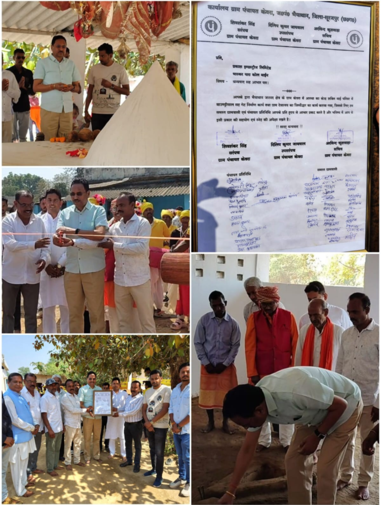 विकासखंड के ग्राम केवरा देवालय का जीर्णोद्धार एवं सती मंदिर का बाउंड्रीबाल , मेनगेट निर्माणकार्य प्रकाश इंडस्ट्रीज कोल माइंस भास्करपारा के द्वारा बहुत ही कम समय में पूरा करा कर ग्राम के दोनों आस्था ,भक्ति के केंद्र को सुरक्षित ही नहीं किया ,दानों आस्था के केन्द्रों की शोभा को भी बढ़ा दिया । इसी पुनीत अवसर पर प्रकाश इंडस्ट्रीज कोल माइंस भास्करपारा के डायरेक्टर *ए.के.चतुर्वेदी* जी ग्राम पंचायत केवरा के सरपंच शिवशंकर सिंह,उपसरपंच दिलीप जायसवाल,सचिव,अरविंद कुशवाहा,दीपक जायसवाल,अखंड प्रताप सिंह,बलजीत कुशवाहा ,रामदेव कुशवाहा,प्रदीप कुशवाहा,श्यामलाल रवि, व वार्ड के पंच एवं ग्राम के समस्त वरिष्ठ नागरिकों के बीच पहुंचे ग्राम के वरिष्ठ जनों ने आत्मीयभाव के साथ फूलमाला से स्वागत किया स्वगतोपरांत जीर्णोद्धार देवालय में फीता काटकर प्रवेश कर ग्राम के मुख्य देवता का पूजा,अर्चन,वंदन करा कर उनको छत्तीसगढ़ के पारंपरिक नित्य करमा से परिचित कराया गया, छत्तीसगढ़ के पारंपरिक नृत्य देख प्रसन्न होकर उन्होंने नृत्य टीम को पारितोषिक भेट प्रदान किया ।