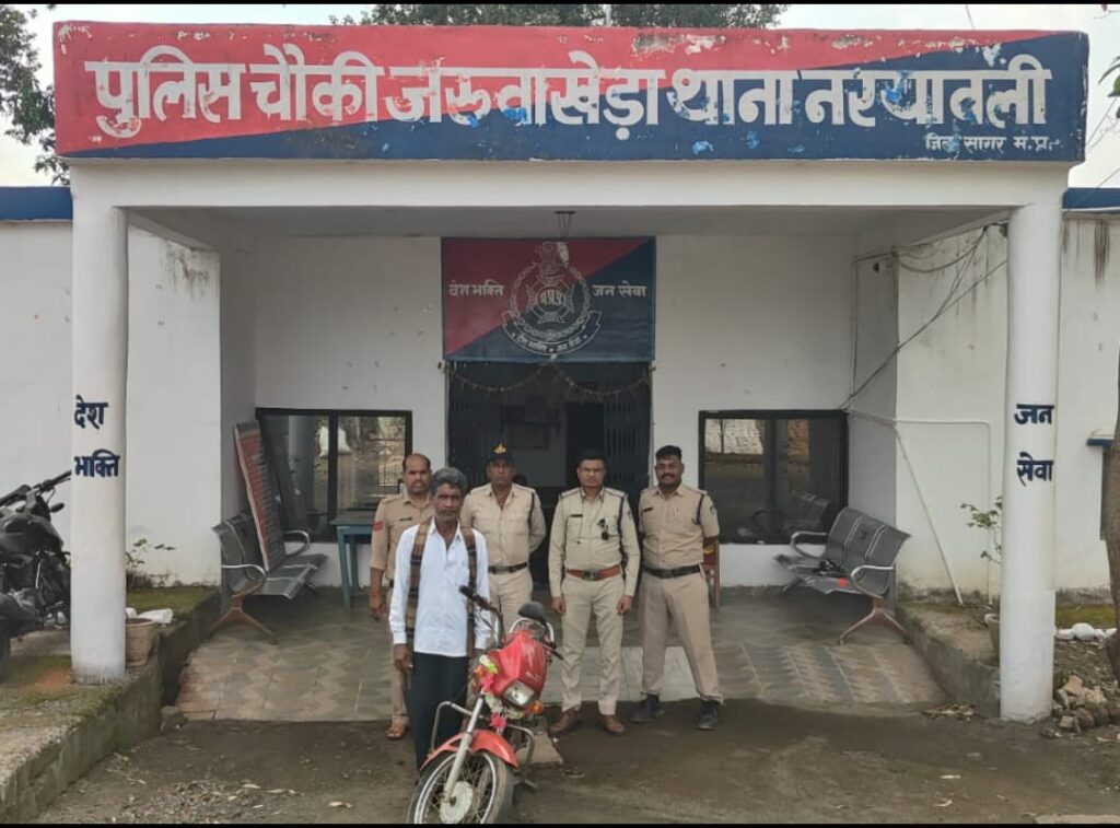 सागर।वंदे भारत लाइव टीवी न्यूज रिपोर्टर सुशील द्विवेदी 8225072664* जरूआखेडा, समय लगभग 12:30 बजे हायर सेकेंडरी स्कूल के सामने से एक हीरो होंडा मोटरसाइकिल क्रमांक MP 15 K 3099 गुम होने की सूचना चौकी जरूआखेड़ा पुलिस को प्राप्त हुई। सूचना प्राप्त होते ही चौकी प्रभारी एवं स्टाफ द्वारा तत्काल क्षेत्र में तलाश / सर्चिंग एवं सीसीटीवी फुटेज व आसपास के व्यक्तियों से पूछताछ कर त्वरित एवं सतर्क कार्यवाही की गई। पुलिस की सक्रियता के परिणामस्वरूप गुम हुई मोटरसाइकिल को कुछ ही समय में हाई स्कूल के पास से बरामद कर लिया गया। संभवतया मोटर साइकिल उठाने वाले असामाजिक तत्व द्वारा पुलिस की सक्रियता को भांप लिया था इसी लिए मोटर साइकिल को छोड़ कर भाग गय बरामद मोटरसाइकिल को इसके चालक/मालिक मलखान पिता शेर सिंह यादव, उम्र 62 वर्ष, निवासी ग्राम गुनगचा, थाना नरयावली के समक्ष विधिवत् सुपुर्द किया गया। वाहन मालिक द्वारा चौकी जरूआखेड़ा पुलिस की त्वरित एवं संवेदनशील कार्यवाही की भूरि-भूरि प्रशंसा करते हुए सहृदय धन्यवाद व्यक्त किया गया। उक्त कार्यवाही में उप निरीक्षक अनिल कुजूर आरक्षक 13 आशीष सैनिक 224 राम किशोर मिश्रा का सराहनीय योगदान रहा