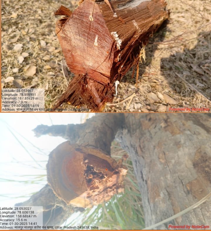 जिला बदायूं सहसवान रेंज के मालपुर तातैरा वन खण्ड मैं हो रहा खैर के हरे-भरे पेड़ों का अवैध कटान