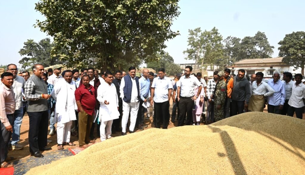 जिले के प्रभारी मंत्री श्री बघेल ने किया धान खरीदी केंद्र बिरकोनी एवं झलप का निरीक्षण