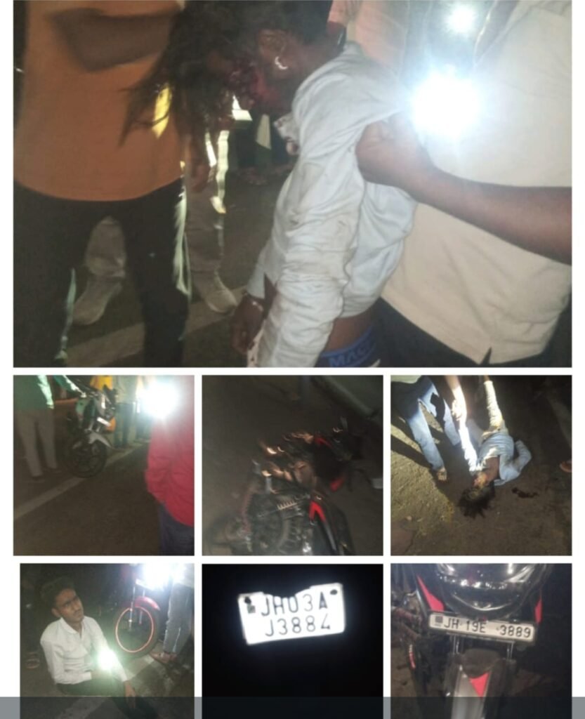 पांकी मेदिनीनगर मुख्य पथ निमाचक पेट्रोल पंप के पास दो अपाची बाइक आपस में टकरी घटना स्थल पर मौजूद ग्रामीणों ने बताया कि एक बाइक डाल्टनगंज से पांकी की ओर जा रही थी वहीं दूसरी बाइक पांकी से डाल्टनगंज की ओर जा रही थी, दोनों बाइक चालक तेज गति से गाड़ी चला रहे थे अचानक दोनों बाइक चालकों का गाड़ी से संतुलन बिगड़ा और आपस में जोरदार टकरे।