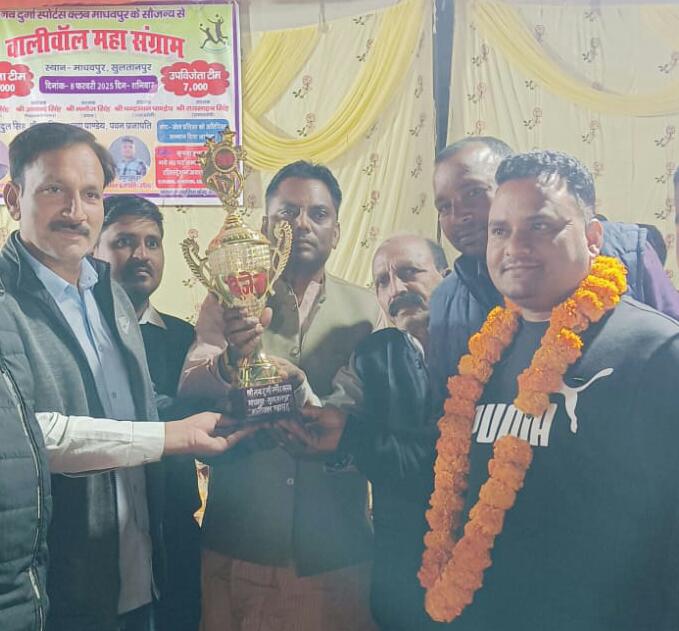लंभुआ तहसील क्षेत्र के माधवपुर गांव में वॉलीबॉल प्रतियोगिता का आयोजन किया गया। श्री नवदुर्गा स्पोर्ट क्लब द्वारा आयोजित वॉलीबॉल प्रतियोगिता के फाइनल में कंधईपुर टीम विजेता रही तथा कस्तूरीपुर टीम उपविजेता रही। विजेता टीम को प्रधान मनोज सिंह ने दस हजार तथा उपविजेता टीम को सात हजार रुपए नगद पुरस्कृत किया और स्मृति चिन्ह देकर सम्मानित किया वॉलीबॉल महाकुंभ में अतिथियों वह क्षेत्र के सम्मानित लोगों को प्रधान मनोज सिंह द्वारा अंग वस्त्र तथा सम्मान पत्र भेंट कर सम्मानित किया गया, इस मौके पर मौजूद रहे समाजवादी राष्ट्रीय प्रवक्ता बबलू सिंह, प्रधान संघ अध्यक्ष बजरंगबली, ब्लॉक प्रमुख सुरेंद्र वर्मा, प्रधान देवी सिंह, सभासद मनोज सिंह, लंभुआ चेयरमैन प्रतिनिधि महेंद्र सिंह, प्रधान प्रतिनिधि अमरसेन सिंह, पूर्व बीडीसी वसीम, पंकज सिंह इंग्लिश गुरु, मृदुल सिंह, पवन प्रजापति,