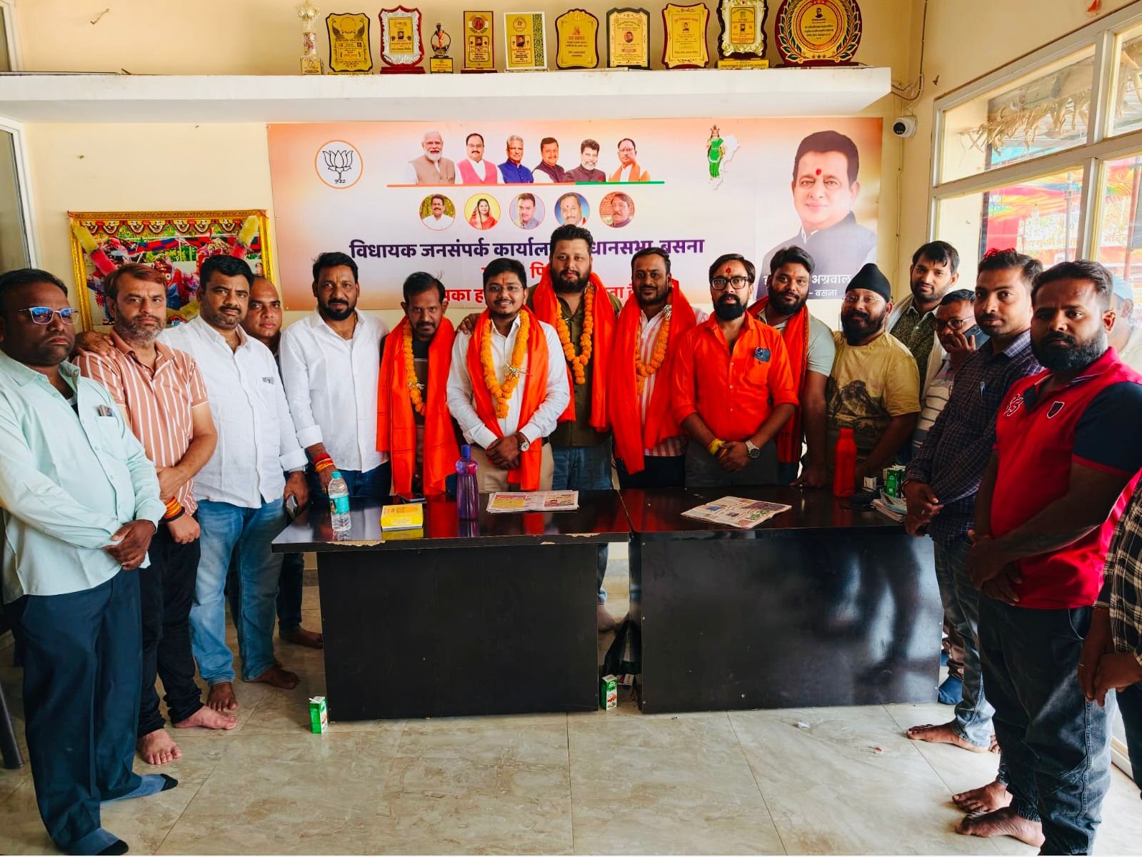 पिथौरा-विधायक जनसंपर्क कार्यालय पिथौरा में पिथौरा मंडल में निवासरत युवा मोर्चा के नवनियुक्त जिला पदाधिकारीयो जिला उपाध्यक्ष विजय नायक, खेल एवं युवा प्रमुख सौरभ अग्रवाल, शासकीय योजना स्वाध्याय मंडल सह प्रमुख अंशुल तिवारी , सह प्रभारी आई टी सेल प्रमुख तुसार बंसल को भाजपा जिला प्रवक्ता स्वप्निल तिवारी जनपद अध्यक्ष प्रतिनिधि पुरर्षोत्तम घृतलहरे मंडल महामंत्री जतींन ठक्कर भाजपा नेता आलोक त्रिपाठी युवा मोर्चा अध्यक्ष विजयराज पटेल दुलिकेशन साहू विधायक प्रतिनिधि रविंदर आज़मानी अल्पसंख्यक मोर्चा जिला महामंत्री जीवन तांडी ने भगवा पंछा पहनाकर व मीठा खिलाकर शुभकामनायें दिये।