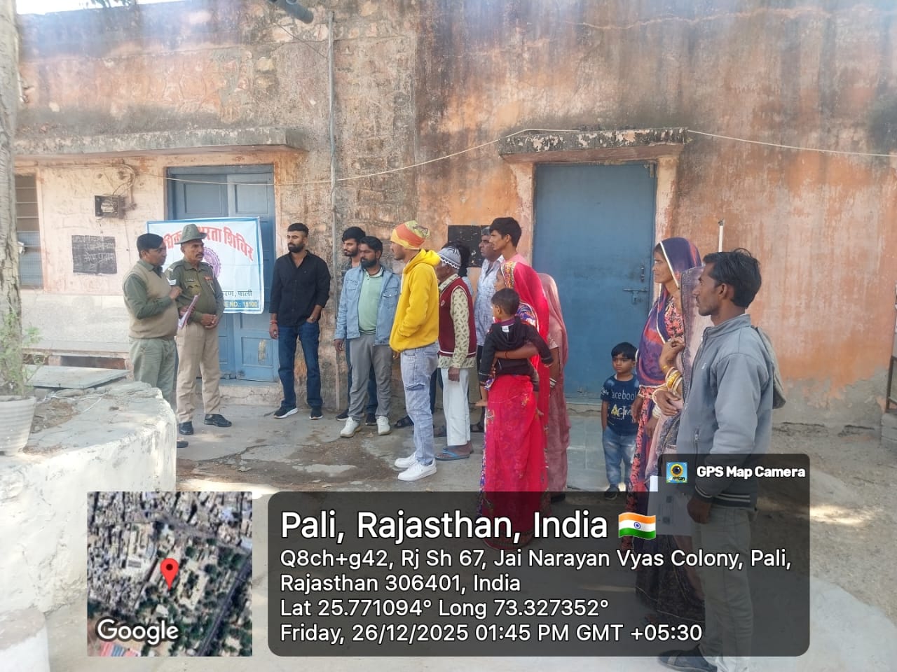संबंधित श्री विक्रम सिंह भाटी सचिव जिला विधिक सेवा प्राधिकरण, पाली के निर्देशन में विधिक जागरूकता कार्यक्रम का आयोजन आज दिनांक 26.12.25 को जिला कारागार परिसर,पाली मे आयोजित किया गया। शिविर में मांगीलाल तंवर अधिकार मित्र द्वारा न्याय विभाग व विभिन्न जनकल्याणकारी योजना से जोड़कर उनको लाभ पहुंचाने तथा लोक उपयोगी समस्याओं का सुलभ और त्वरित समाधान अभियान के तहत लोक लोक उपयोगी सेवाओं जैसे बिजली,पानी, परिवहन, बैंकिंग,बीमा स्वास्थ्य सेवाएं भू संपदा सेवाएं, पीड़ित प्रतिकर स्कीम,पॉक्सो,कन्याभ्रूण हत्या,नॉलसा हेल्पलाइन नम्बर 15100 आदि की जानकारी अंत में न्याय आपके द्वार अभियान से सम्पर्क व हेल्प लाइन नम्बर 9119365734 नॉलसा हेल्पलाइन, कैदियो के निःशुल्क अधिवक्ता आदि की जानकारी प्रदान की। इस शिविर मे शिवनारायण प्रभारी आरएसी ने बंदियो के अधिकार, मुलाक़ात प्रक्रिया आदि की जानकारी प्रदान की। इस शिविर मे प्रहरी गणपत राम, श्रीराम तथा बंदियों के परिजन मौजूद रहे। अंत मे ‘बाल विवाह को कहे ना ‘की शपथ भी दिलवाई।