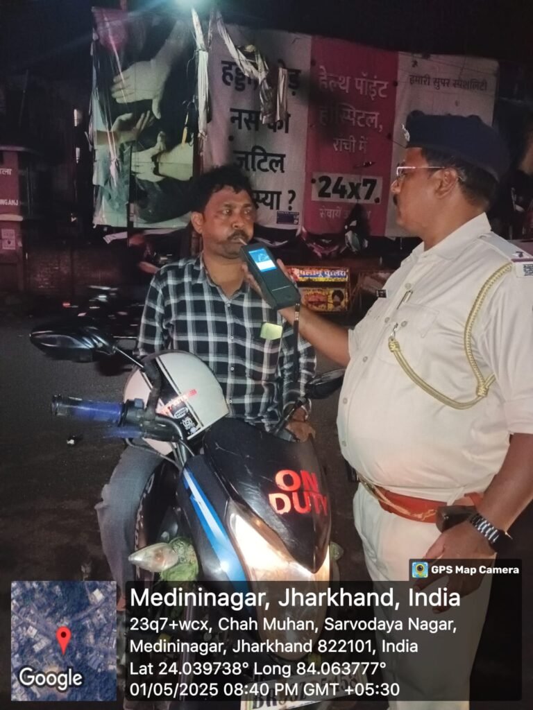 छः मुहान के पास सधन जांच अभियान चलाया गया चार पहिया वाहन एवं दुपहिया वाहन गाड़ियों का जांच किया गया जांच के क्रम में कुछ चालकों का ब्रेथ एनालाइजर मशीन से शराब पीने का भी जांच किया गया लेकिन कोई भी चालक शराब पिए हुए नहीं पाए गए तो सभी गाड़ियों को जांच पडताल कर छोड़ दिया गया ।जय हिंद सर यातायात पुलिस पलामू।