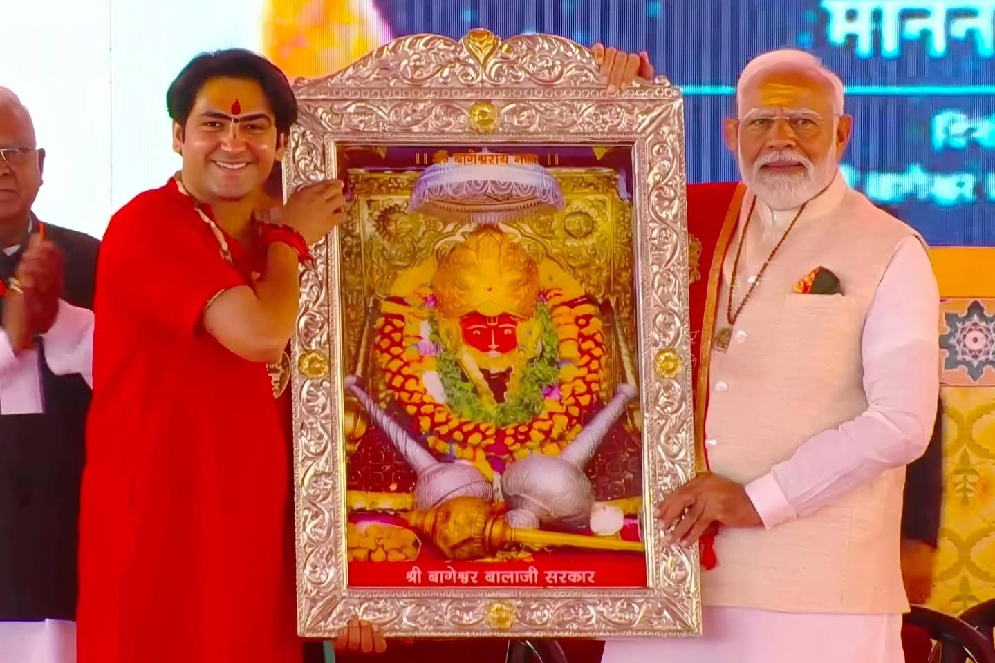 प्रधानमंत्री नरेन्द्र मोदी ने कहा कि आज मैं सोच रहा था कि हनुमान दादा की मुझ पर कृपा होती है या नहीं। मैंने आज पहली पर्ची निकाली, धीरेंद्र शास्त्री की माता जी की। मैंने उनसे कहा कि आप यह सोच रही है कि इनकी शादी जल्दी हो जाए। पीएम ने कहा कि मैं धीरेंद्र जी से वादा करता हूं कि मैं उनकी बरात में भी आऊंगा और अस्पताल के उद्घाटन में भी।