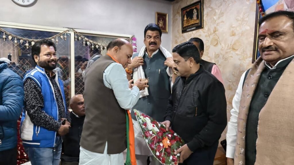 प्रदेशाध्यक्ष खंडेलवाल का विधायक लारिया के निवास पर हुआ भव्य स्वागत