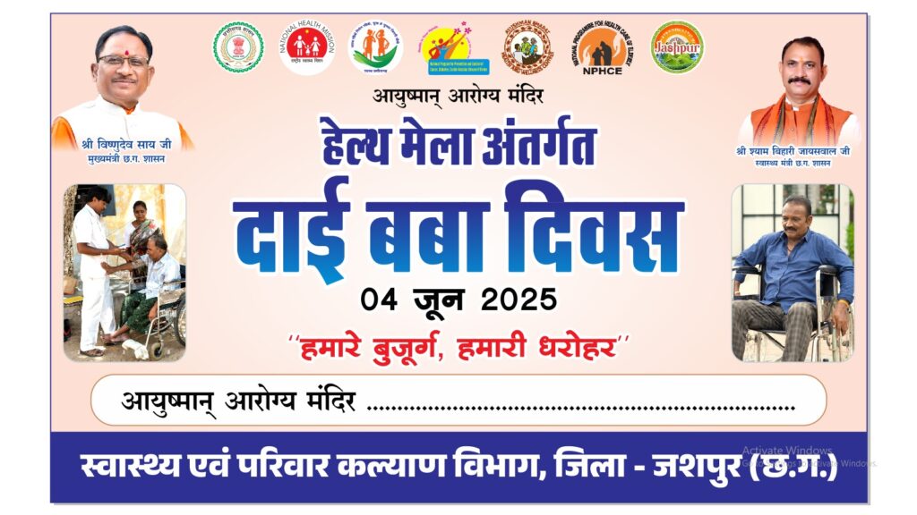 जशपुर – स्वास्थ्य विभाग निर्देशनुसार जशपुर जिले के सभी आयुष्मान आरोग्य मंदिर में हमर बुजुर्ग हमर धरोहर विषय पर आधारित स्वास्थ्य मेले के रूप में दाई-बबा दिवस मनाया गया। इसी कड़ी में आयुष्मान आरोग्य मंदिर प्राथमिक स्वास्थ्य केंद्र पैकू में कार्यक्रम का आयोजन किया गया जँहा पर ग्राम के दाई बबा बड़ी संख्या में उपस्थित रहे आयुष्मान आरोग्य मंदिर पी एच सी पैकू के प्रभारी साकेत वर्मा एवं ममता सिंह के साथ सीएचओ रुचिका नगेसिया ने सभी वृद्धजनों का समाज के अनमोल धरोहर के रूप में सम्मान स्वागत किया और हेल्थ मेला में आये सभी का स्वास्थ्य जांच किया गया जिसके अतर्गत बीपी , शुगर, नेत्र जांच, ओरल कैंसर का स्क्रीनिंग का कार्य किया गया ।