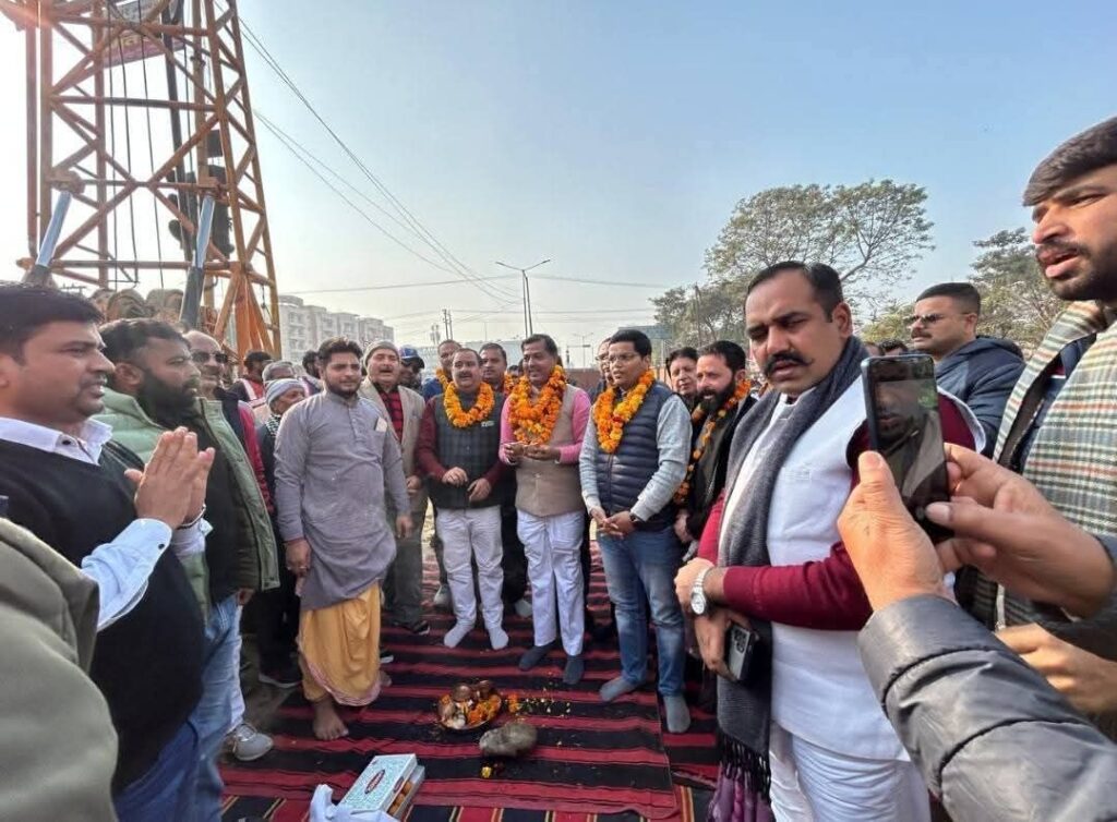 FB_IMG_1766752304408धर्मनगरी हरिद्वार को वर्षों पुराने भीषण यातायात जाम की समस्या से जल्द ही मुक्ति मिलने जा रही है। राष्ट्रीय राजमार्ग 334 (दिल्ली-हरिद्वार) पर बढ़ते यातायात के दबाव को कम करने, दुर्घटनाओं को रोकने और नागरिकों की सुविधा के लिए जुर्स कंट्री तिराहे, सीतापुर से फ्लाईओवर के निर्माण कार्य का रानीपुर विधायक आदेश चौहान ने निर्विघ्न एवं ससमय कार्य पूर्ण होने की कामना के साथ आज विधिवत पूजन कर कार्य शुरू कराया। राष्ट्रीय राजमार्ग प्राधिकरण द्वारा 800 मीटर बनने वाले इस फ्लाईओवर का निर्माण लगभग 10 करोड़ की लागत से किया जा रहा है।