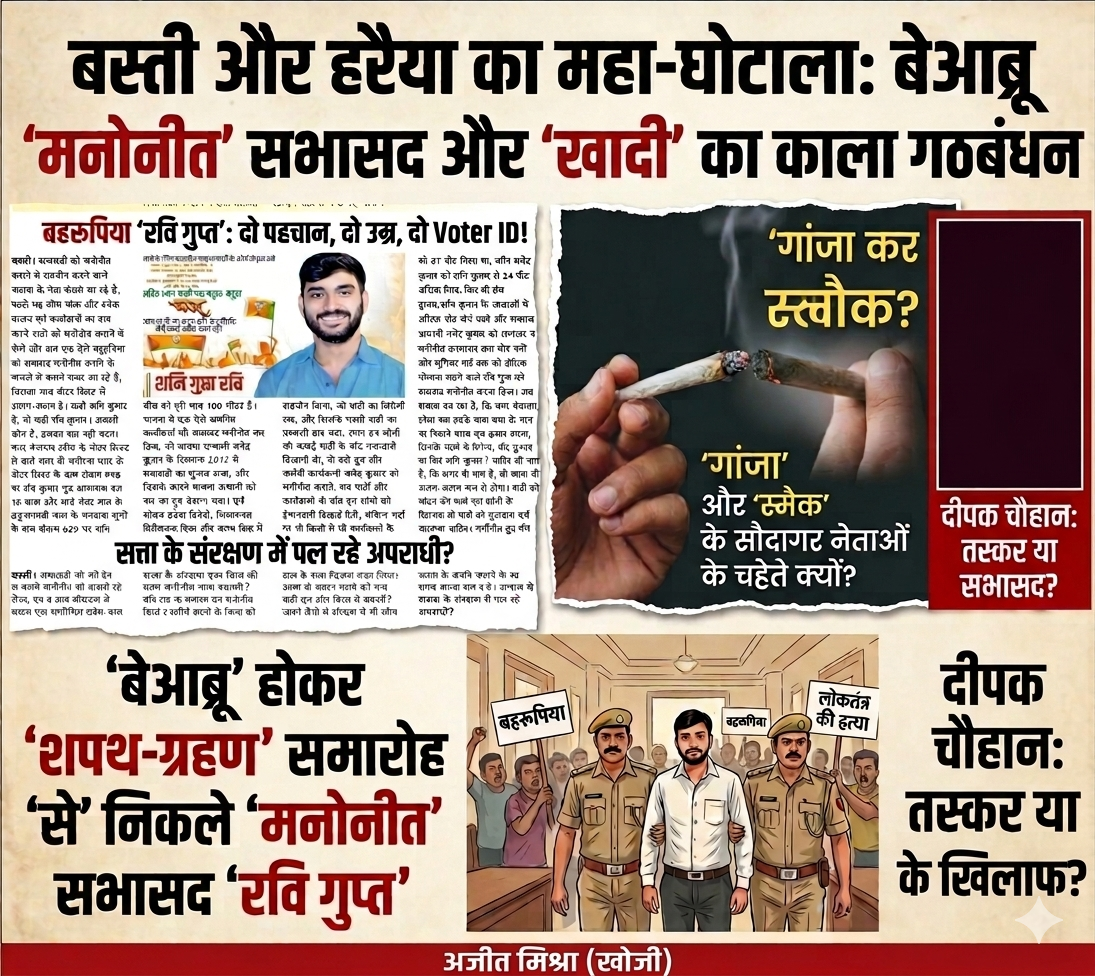 🚨सत्ता की गोद में ‘सिंडिकेट’ और ‘बहरूपियों’ का नंगा नाच! बस्ती मंडल में ‘सिंडिकेट’ का कब्जा: बहरूपियों को शपथ और तस्करों को संरक्षण… शर्म करो हुक्मरानों!🚨