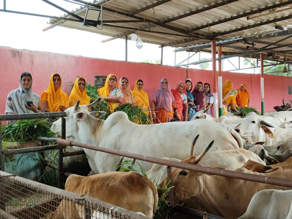 गौभक्त महिला भजन मंडली द्वारा भजन प्रस्तुत किये। गौशाला में हरे घास खिलते गौ सेवा कि।