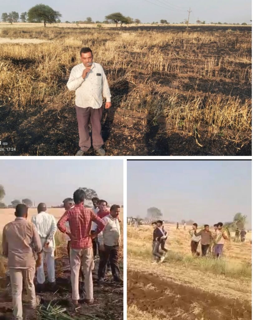 बिजली की शार्ट सर्किट से गेहूं की खड़ी फसल में में लगी आग कई बीघा की फसल हुई तबाह परिवार का रो रोकर बुरा हाल
