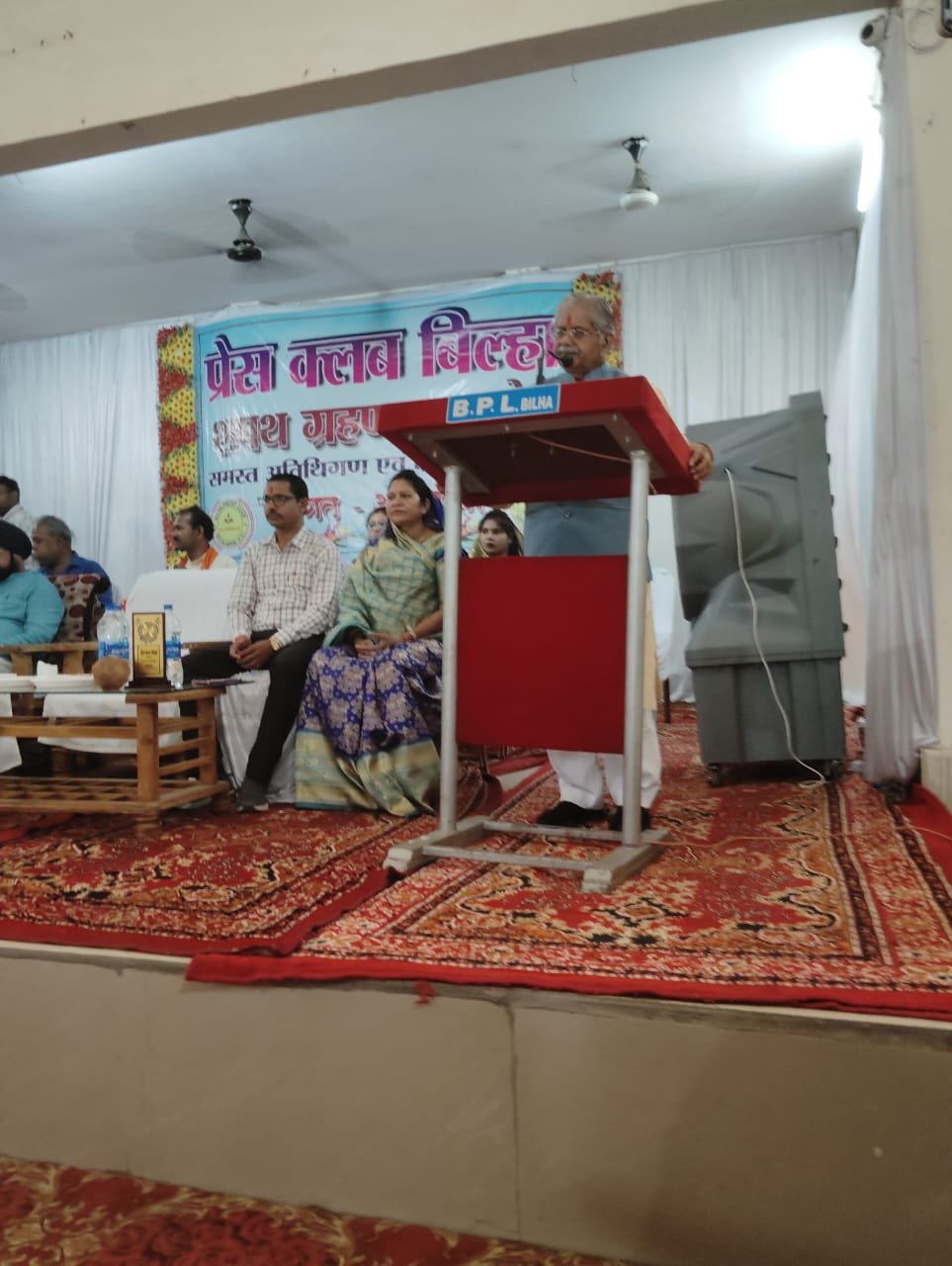 बिल्हा प्रेस क्लब का शपथ ग्रहण समारोह शुक्रवार शाम 3 बजे नगर पंचायत के पीछे स्थित सांस्कृतिक भवन रखा गया था। इस कार्यक्रम में विधायक सहित सभी अतिथि निर्धारित समय से 15 मिनट पहले पहुंचे। कार्यक्रम में क्षेत्र के पत्रकार एवं नागरिक के अलावा सम्मानीय शिक्षक लोग उपस्थित रहे।