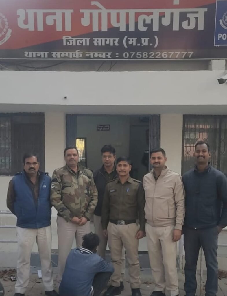 सागर/वंदे भारत लाइव टीवी न्यूज रिपोर्टर सुशील द्विवेदी 8225072664 * अतिरिक्त पुलिस अधीक्षक लोकेश कुमार सिंहा के मार्गदर्शन में जिले में अपराधों पर प्रभावी नियंत्रण एवं आमजन की सुरक्षा सुनिश्चित करने हेतु सागर पुलिस द्वारा लगातार सतर्क एवं निर्णायक कार्रवाई की जा रही है। इसी क्रम में थाना गोपालगंज पुलिस ने त्वरित कार्रवाई करते हुए अस्पताल जैसे संवेदनशील स्थान पर हथियार लेकर घूम रहे एक व्यक्ति को गिरफ्तार कर बड़ी घटना को टाल दिया।