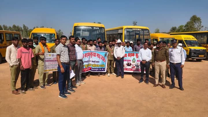 **महासमुंद राष्ट्रीय सड़क सुरक्षा माह 2026 के अवसर पर बसना, सरायपाली क्षेत्र के स्कूल बस वाहनों का भौतिक निरीक्षण शिविर का आयोजन किया**