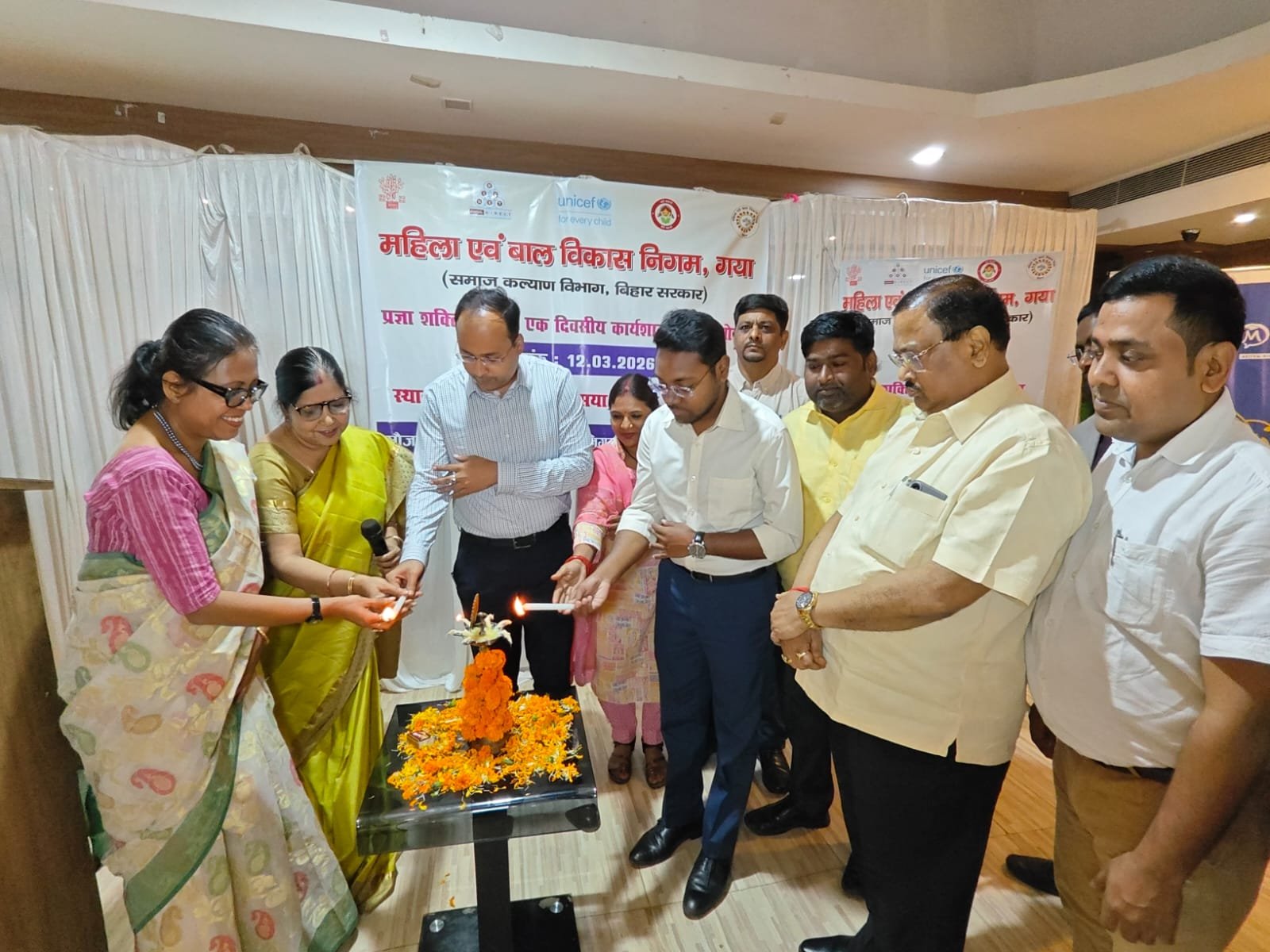 गया, 12 मार्च 2026, महिला एवं बाल विकास निगम गया के तत्वाधान मे प्रज्ञा शक्ति के तहत ज़िला पदाधिकारी गया श्री शशांक शुभंकर की अध्यक्षता में आज 1 दिवसीय कार्यशाला एक निजी होटल में आयोजित की गई। कार्यशाला का शुभारंभ जिला पदाधिकारी, सहायक समाहर्ता, सिविल सर्जन, डीपीओ आइसीडीएस सहित अन्य पदाधिकारियों द्वारा द्वीप प्रज्वलित कर किया गया। यह प्रोग्राम गया जिले में मॉडल के रूप में चालू किया गया है।