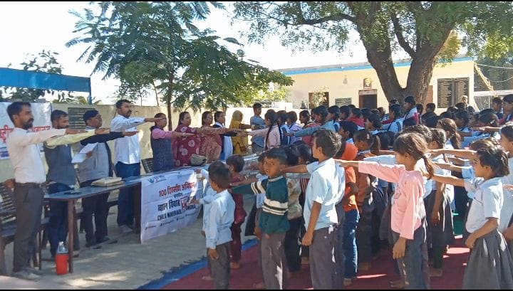 मादड़ी राजकीय उच्च माध्यमिक विद्यालय में बाल विवाह मुक्त भारत अभियान के तहत दिलाई शपथ एवं सरकारी योजना की दी जानकारी।