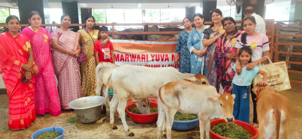 मारवाड़ी युवा मंच पर्ल महिला शाखा सिकंदराबाद द्वारा गौशाला में गायों को चारा खिलाकर गौ सेवा की गई।