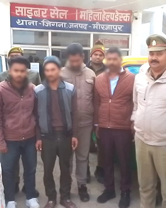 नाम पता गिरफ्तार अभियुक्तगण– 1. राहुल सिंह पुत्र जयमंगल सिंह निवासी ग्राम माड़ौ थाना बैकुण्ठपुर जिला रीवा म०प्र०, उम्र करीब 38 वर्ष 2. धीरज सिंह पुत्र अतिबल सिंह निवासी ग्राम आसमानपट्टी गौरा थाना जिगना मीरजापुर, उम्र करीब 47 वर्ष 3. प्रतीक सिंह पुत्र चन्द्रशेखर सिंह निवासी भिलगौर थाना जिगना मीरजापुर, उम्र करीब 47 वर्ष 4. भोला तिवारी पुत्र कुंजबिहारी तिवारी निवासी भिलगौर थाना जिगना जनपद मीरजापुर, उम्र करीब-28 वर्ष