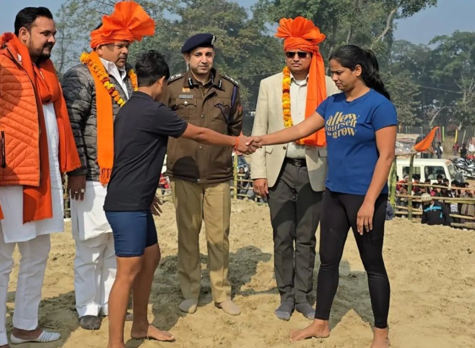 मौनी अमावस्या के अवसर पर राप्ती नदी तट स्थित परशुराम वाटिका में दो दिवसीय राम राम कुश्ती दंगल का आयोजन किया गया। धर्म रक्षा मंच के तत्वावधान में शनिवार को शुरू हुए इस पारंपरिक मेले के दौरान नेपाल सहित देश के कई राज्यों के पहलवानों ने भाग लिया। हजारों की संख्या में दर्शक दूर-दराज के क्षेत्रों से दंगल देखने पहुंचे।