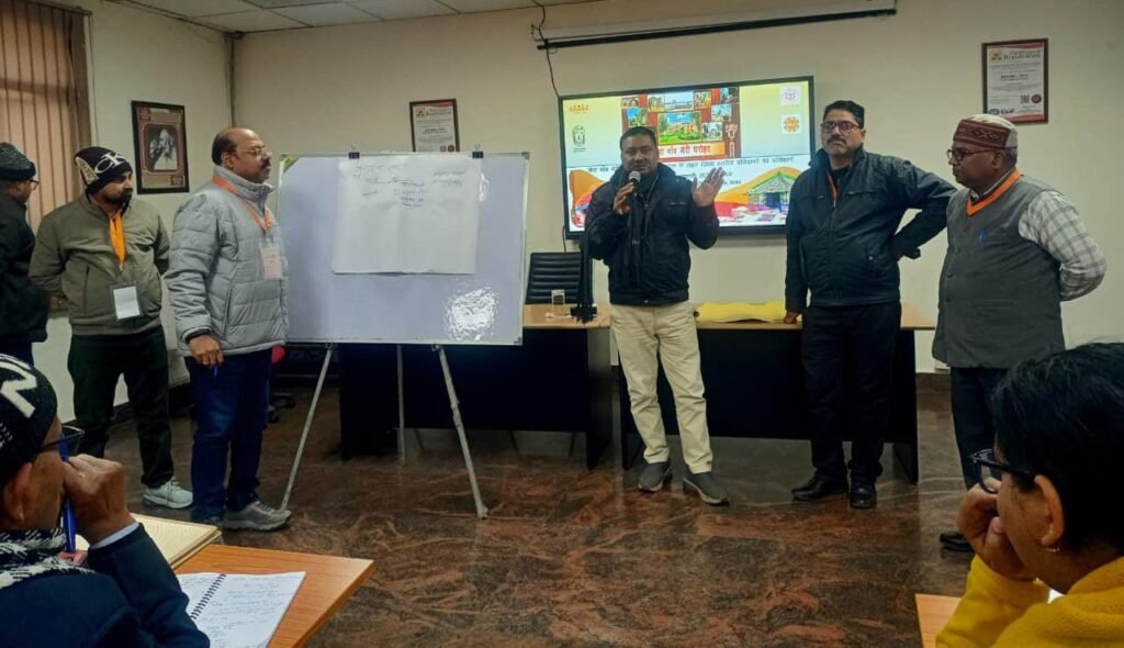 जिसमें मेरा गांव मेरी धरोहर के निदेशक मयंक शेखर ने ऑनलाइन जुड़कर दिल्ली से आवश्यक दिशा निर्देश दिए। एक दिवसीय टीओटी में मेरा गांव मेरी धरोहर योजना उत्तर प्रदेश के नोडल एस एन सिंह संयुक्त निदेशक पंचायती राज के दिशा निर्देशन में द्वितीय बैच का शुभारंभ पंचायती राज प्रशिक्षण संस्थान प्रिट की स्टेट कंसलटेंट श्रीमती सुनीता सिंह, फैकल्टी मनीष कुमार मिश्रा एवं आशीष कुमार तिवारी, मेरा गांव मेरी धरोहर संस्कृति मंत्रालय के नेशनल ट्रेनर अमित कुमार सिंह तोमर द्वारा संयुक्त रूप से करते हुए प्रशिक्षण के उद्देश्य और महत्व पर चर्चा की। राष्ट्रीय प्रशिक्षक अमित कुमार सिंह तोमर ने कहा कि यूपी में 26 जनवरी को आयोजित की जाएगी ग्राम सभा जिसकी तैयारी की जा रही है। जनपद स्तरीय मास्टर प्रशिक्षकों की टीओटी में राष्ट्रीय प्रशिक्षक अमित कुमार सिंह तोमर ने प्रशिक्षण देते हुए क्षेत्र प्रश्नावली को कहानी, उदाहरण, समूह चर्चा, पीआरए आदि के माध्यम से समझाया तथा पंचायत और गांव की पहचान, सांस्कृतिक महत्व, मूर्त विरासत स्थल, अमूर्त सांस्कृतिक प्रथा, परंपरा और जीवंत विरासत, आयोजन, उत्सव, मेला, सांस्कृतिक व्यवसायी, कारीगर, सांस्कृतिक संस्था, स्थान, वस्तु, कलाकृति एवं पंचायत का सांस्कृतिक विवरण आदि की जानकारी देते हुए वेबसाइट एमजीएमडी.जीओवी.इन का लाइव डेमो आदि कर विभिन्न प्रश्नों का समाधान किया। पंचायती राज प्रशिक्षण संस्थान प्रिट के फैकल्टी मनीष कुमार मिश्रा, आशीष कुमार तिवारी आदि द्वारा टीएमपी पोर्टल पर फीडबैक, प्रतियोगिता व ऑनलाइन प्रमाण पत्र जारी कराए गए। प्रशिक्षण में लखनऊ, हरदोई, लखीमपुर खीरी, सीतापुर, उन्नाव, अलीगढ़, एटा, हाथरस, कासगंज, प्रयागराज, कौशांबी, फतेहपुर, प्रतापगढ़, झांसी, जालौन, ललितपुर, गोण्डा, बहराइच, बलरामपुर, श्रावस्ती, अयोध्या, अंबेडकर नगर, बाराबंकी, सुल्तानपुर, अमेठी आदि जनपद से तीन- तीन मास्टर ट्रेनर ने प्रतिभाग किया। जिसमें प्रमुख रूप से नीरज मिश्रा, विवेक मिश्रा, विनय प्रकाश वर्मा, योगेंद्र सिंह, अजय कुमार पटेल, विमलेश सरोज, जानकी राम, रवीश खान, शिवा शुक्ला सहित एडीपीआरओ, सहायक विकास अधिकारी पंचायत, ग्राम पंचायत अधिकारी, एनजीओ सेक्टर से मास्टर ट्रेनर, तकनीकी सहायक, इंजीनियर प्रमुख रहे। स्टेट कंसल्टेंट श्रीमती सुनीता सिंह ने बताया कि अंतिम तृतीय बैच का आयोजन शुक्रवार 9 जनवरी को आयोजित किया जाएगा जिसकी तैयारी पूर्ण कर ली गई है। फैकल्टी मनीष कुमार मिश्रा ने संस्कृति मंत्रालय के नेशनल ट्रेनर अमित कुमार सिंह तोमर सहित सभी का धन्यवाद व्यक्त किया।