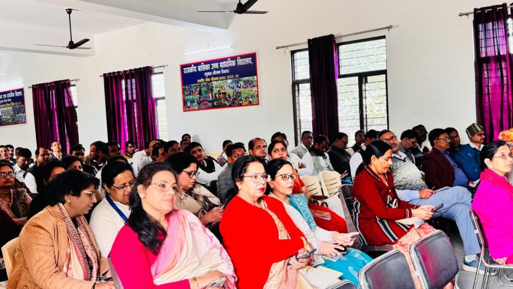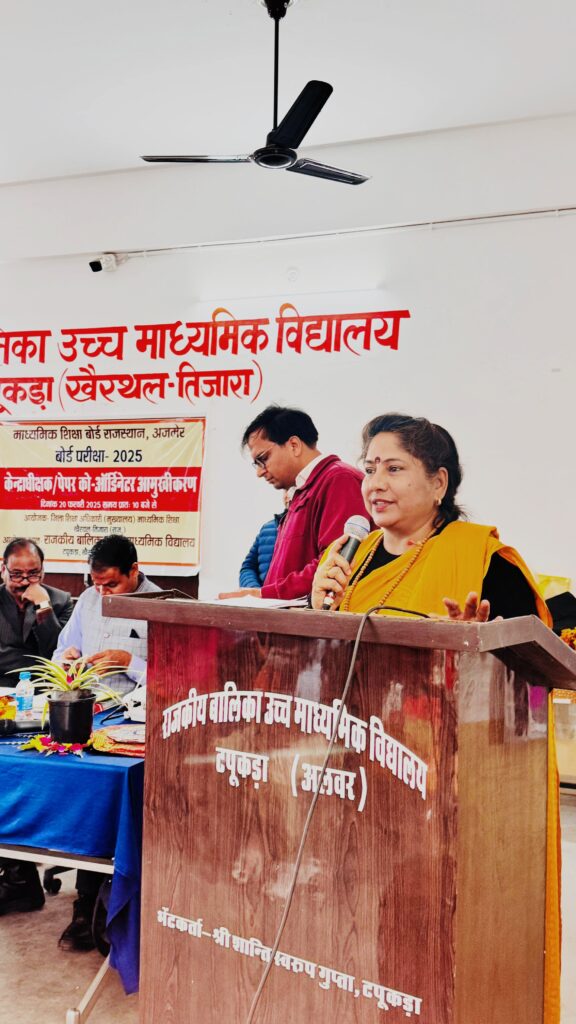 राजकीय बालिका उच्च माध्यमिक विद्यालय में, माध्यमिक शिक्षा बोर्ड परीक्षा 2025 आमुखीकरण कार्यशाला का जिला स्तरीय प्रशिक्षण कार्यक्रम आयोजित किया गया। जिला स्तरीय प्रशिक्षण में खैरथल तिजारा जिले के समस्त परीक्षा केदो के केंद्र अधीक्षक व पेपर को ऑर्डिनेटर ने भाग लिया। कार्यक्रम की अध्यक्षता जिला शिक्षा अधिकारी शकुंतला मीणा ने की, तथा मुख्य अतिथि भामाशाह हरि ओम गुप्ता, विशिष्ट अतिथि राजेश यादव एसीबीईओ रहे। प्रशिक्षक राजेश मुखीजा तथा गोपाल सिंह ने बोर्ड परीक्षा आयोजन की तैयारीयों व अन्य आवश्यक जानकारियां दी। संस्था प्रधान नीलम यादव ने आए हुए सभी विभागीय अधिकारियों एवं कर्मचारियों का हार्दिक स्वागत किया। इस अवसर पर नव पदोन्नत शिक्षा अधिकारियों का भी विद्यालय परिवार द्वारा स्वागत व सम्मान किया गया। मंच संचालन व्याख्याता सत्य प्रकाश ने किया।