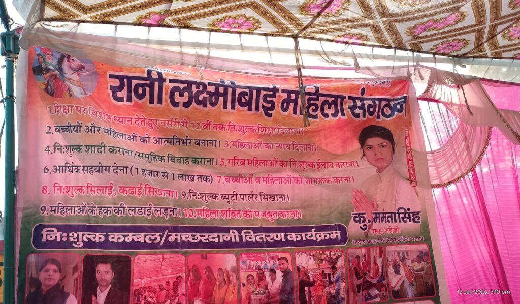 कार्यक्रम की अध्यक्षता संगठन की राष्ट्रीय अध्यक्ष कु. ममता सिंह ने की।अपने संबोधन में पूर्व विधायक पवन केडिया ने कहा कि महिलाओं के लिए कार्य कर रहे संगठनों की भूमिका समाज में अत्यंत महत्वपूर्ण है। उन्होंने कहा कि इस प्रकार के सेवा कार्य जरूरतमंदों तक सीधी राहत पहुंचाते हैं और ऐसे प्रयासों को निरंतर जारी रहना चाहिए। मुख्य अतिथि गंगा सिंह सैथवार ने संगठन के कार्यों की सराहना करते हुए महिलाओं के सशक्तिकरण पर जोर दिया।संगठन की राष्ट्रीय अध्यक्ष कु. ममता सिंह ने बताया कि रानी लक्ष्मीबाई महिला संगठन महिलाओं को आत्मनिर्भर बनाने, शिक्षा, स्वास्थ्य, जागरूकता और सामाजिक न्याय के क्षेत्र में लगातार कार्य कर रहा है।कार्यक्रम के सफल आयोजन में संगठन की राष्ट्रीय सचिव कु. बबिता सिंह, राष्ट्रीय सचिव (प्रशासन) अविनाश कुमार, ब्लॉक अध्यक्ष (पिपराइच) नेहा चौधरी, ग्राम अध्यक्ष कुसुम देवी एवं मोनी देवी, जिला उपाध्यक्ष फातिमा गुड्डा, गुड्डी निषाद, शान्ति देवी, ब्लॉक अध्यक्ष (कुशीनगर) ममता देवी, मनीषा देवी तथा वार्ड प्रभारी सीमा व बब्बू का महत्वपूर्ण सहयोग रहा।कार्यक्रम के दौरान समाज में सकारात्मक भूमिका निभाने वाले।पत्रकारों को भी सम्मानित किया गया। कंबल पाकर महिलाओं के चेहरों पर खुशी साफ दिखाई दी। कार्यक्रम में बड़ी संख्या में महिलाएं, स्थानीय नागरिक, सामाजिक कार्यकर्ता एवं संगठन के पदाधिकारी मौजूद रहे।