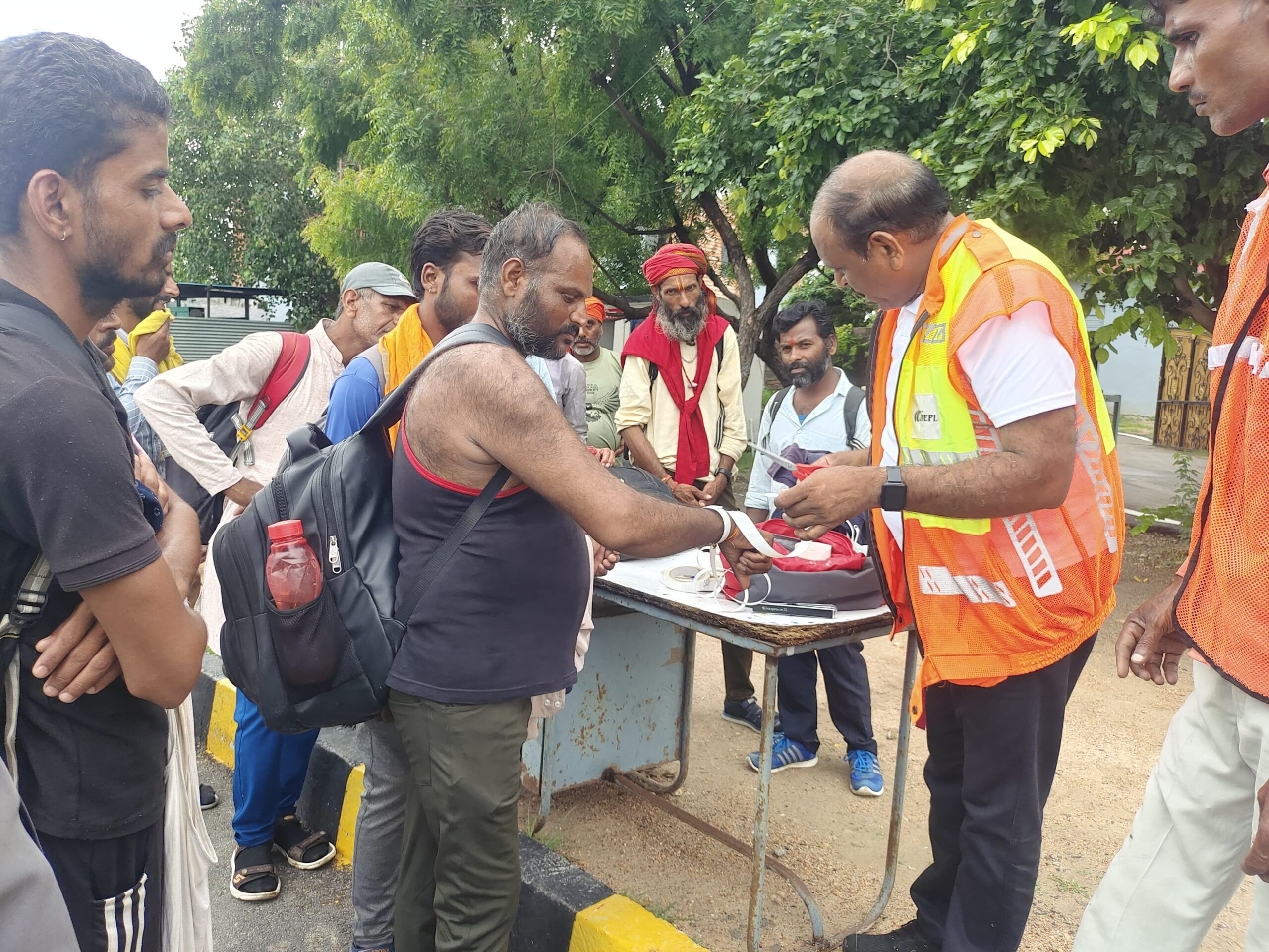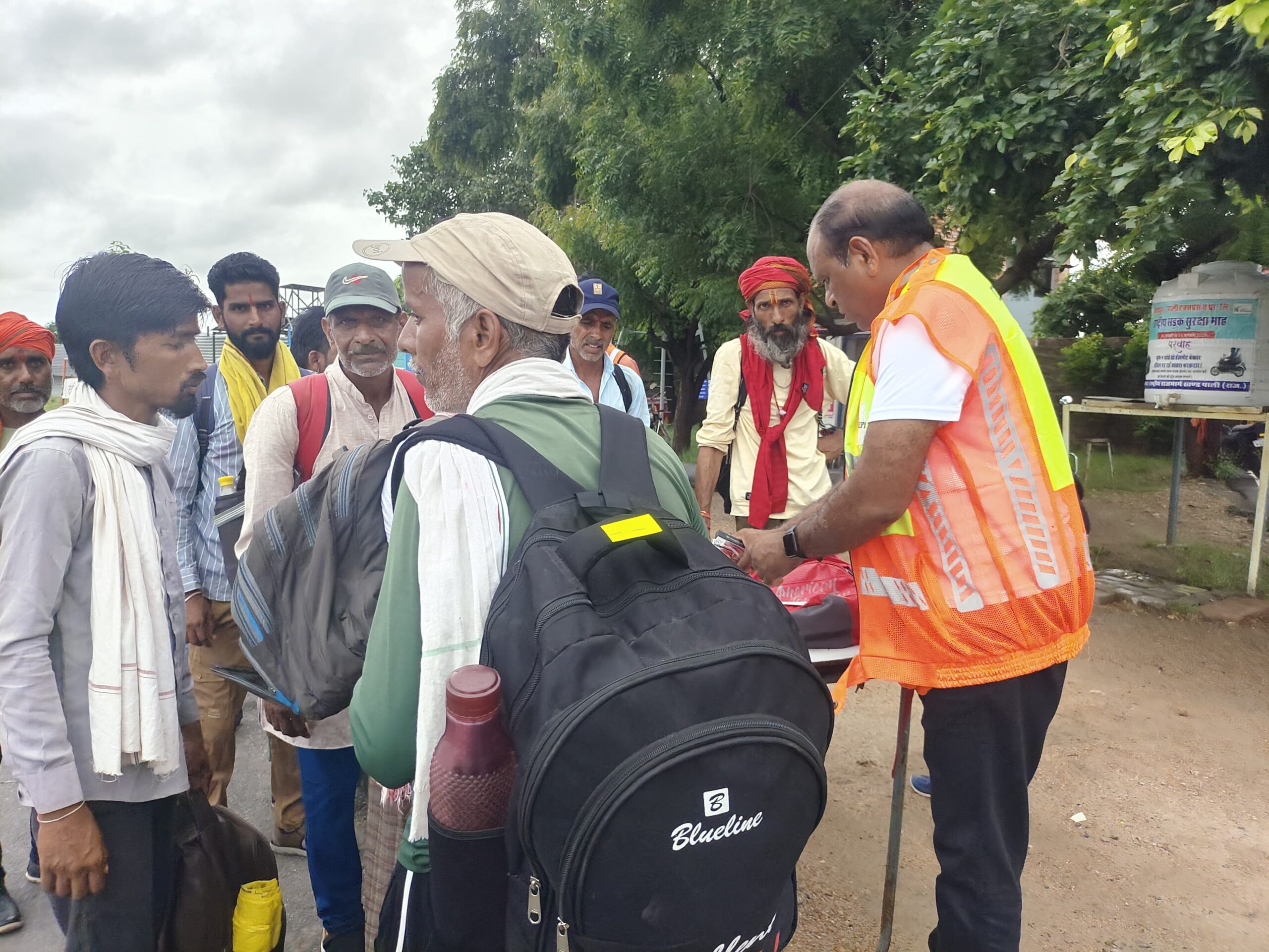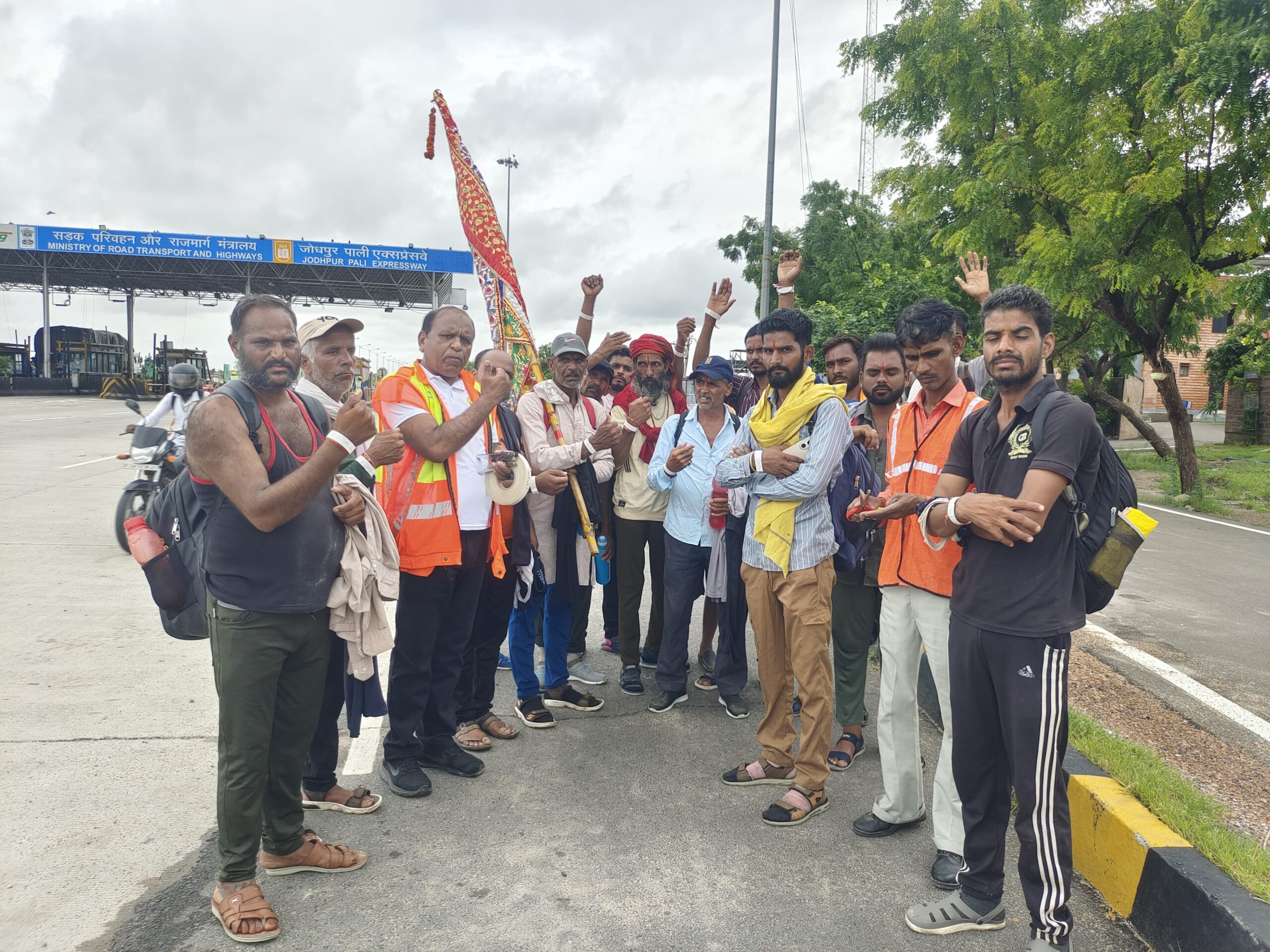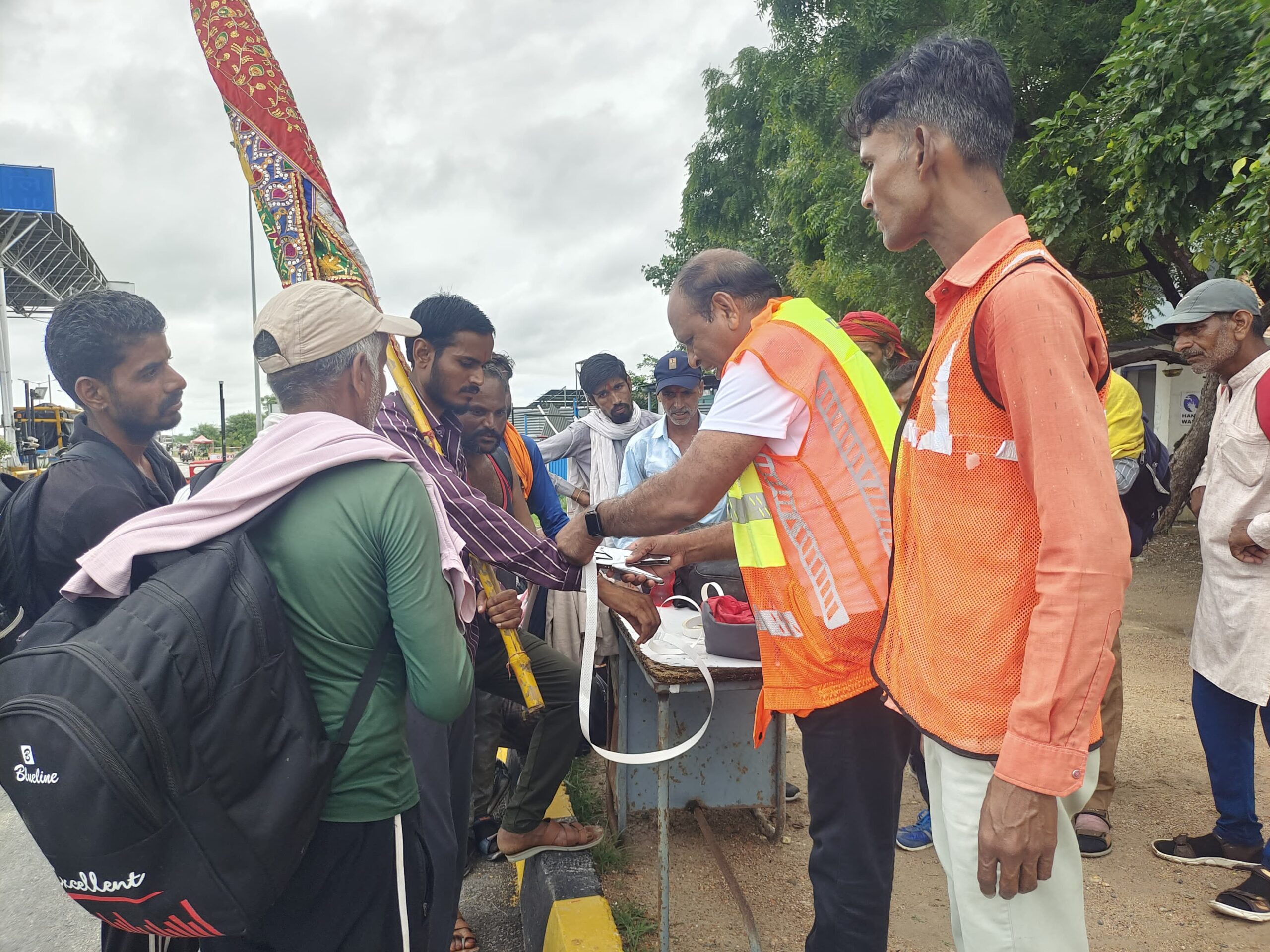 रामदेवरा जा रहे पैदल जातरुओ के हाथों में रेडियम हैंड बेल्ट एवं बैग के पीछे लगाए रेडियम स्टिकर