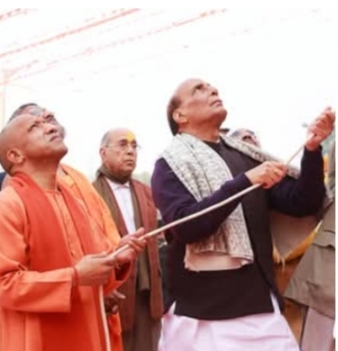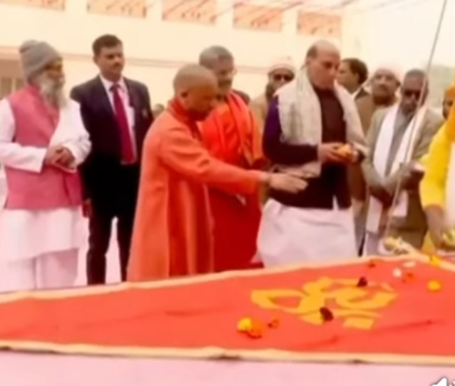 श्रीराम जन्मभूमि मंदिर में प्रभु रामलला के विराजमान होने के प्रतिष्ठा द्वादशी के द्वितीय वार्षिकोत्सव में शामिल होने, आज देश के रक्षा मंत्री राजनाथ सिंह, मुख्यमंत्री योगी आदित्यनाथ के साथ अयोध्या धाम पहुंचे। इस अवसर पर उन्होंने सबसे पहले हनुमानगढ़ी में हनुमान जी का दर्शन पूजन कर, श्रीराम जन्मभूमि मंदिर में प्रभु रामलला के दर्शन किये। इसके बाद उन्होंने मंत्रोच्चार के बीच श्रीराम जन्मभूमि मंदिर परिसर में बने में मां अन्नपूर्णा मंदिर के शिखर पर धर्मध्वजा को स्थापित किया। इस दौरान रक्षा मंत्री ने अपने मनोभावों को व्यक्त करते हुए कहा कि “नाथ आजु मैं काह न पावा”। ऐसा लग रहा है कि जीवन में मैं जो पाना चाहता था, वह सब कुछ मुझे मिल गया। रक्षा मंत्री राजनाथ सिंह ने इसे अपने जीवन का सौभाग्यशाली दिन बताते हुए कहा।आज से दो वर्ष पूर्व जब प्रभु श्रीराम यहां पुनर्प्रतिष्ठित हुए। वो समस्त भारतवासियों के लिए गौरव का ऐतिहासिक क्षण था। प्रभु श्रीराम अपनी कीर्ति से आज केवल भारतवर्ष ही नहीं। बल्कि पूरे विश्व को विभूषित कर रहे हैं। उन्होंने इस दिन को गौरवपूर्ण बताते हुए याद दिलाया कि यह वही भूमि है।जिसने वर्षों तक भगवान राम के लिए असहनीय बलिदान दिया।अपमान सहा, लेकिन आस्था को कभी डिगने नहीं दिया।उन्होंने कहा कि अयोध्या में केवल श्रीराम मंदिर का ही निर्माण नहीं हुआ है बल्कि हवाई अड्डा, रेल नेटवर्क। रोड कनेक्टिविटी के साथ उद्योग, व्यापार का सभी क्षेत्रों में अयोध्या विकास के नये आयाम रच रही है। विकास की यह धारा केवल अयोध्या तक सीमित नहीं है, बल्कि पूरे अवध प्रांत से लेकर देश के कोने-कोने तक पहुंच रही है। अवधपुरी की इस विकास यात्रा के लिए उन्होंने डबल इंजन सरकार में प्रधानमंत्री नरेंद्र मोदी और मुख्यमंत्री योगी आदित्यनाथ के कुशल नेतृत्व और सफल प्रयास की सराहना की और बधाई दी।