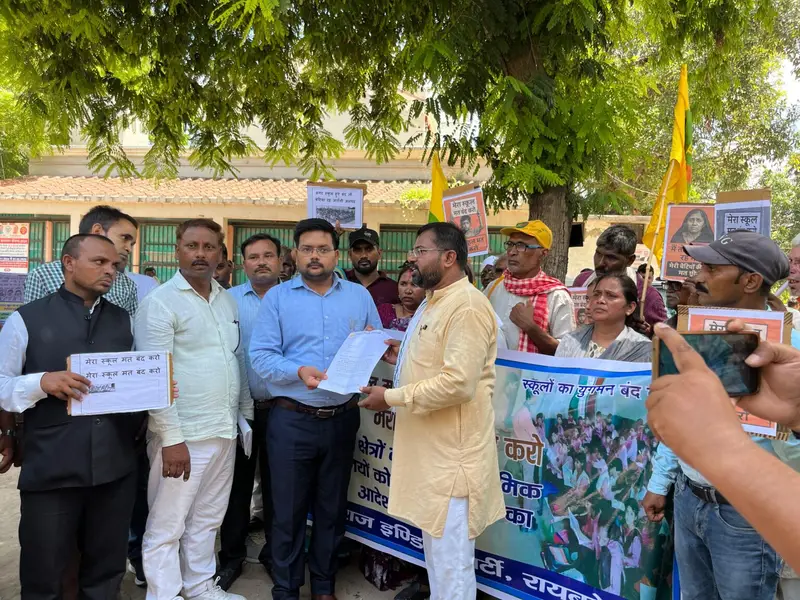 कलेक्ट्रेट परिसर में शुक्रवार को स्वराज इंडिया पार्टी के पदाधिकारी ने विरोध करते हुए ज्ञापन सौंपा है। सरकार के आदेश के खिलाफ यहां विरोध किया जा रहा है। कम छात्र संख्या वाले प्राथमिक विद्यालयों को बंद करके उनके छात्रों को अन्य किसी विद्यालय में मर्ज किए जाने वाले शासनादेश के खिलाफ स्वराज इंडिया पार्टी ने मुख्यमंत्री को सम्बोधित ज्ञापन देकर उक्त फैसले को वापस लिए जाने की मांग की है। स्वराज इंडिया पार्टी की रायबरेली इकाई के सैकड़ों लोगों ने जिलाधिकारी कार्यालय पहुंच कर विद्यालयों को बंद ना किए जाने की मांग की है। स्वराज इंडिया पार्टी के जिलाध्यक्ष राम विलास यादव ने कहा कि आए दिन बेटियों के साथ अपराध होने की घटनाएं प्रकाश में आती है ऐसे में यदि विद्यालय घर से दूर हो जाएँगे तो बेटियों के साथ अपराध की घटना होने की सम्भावना बढ़ सकती है। विद्यालय दूर हो जाने की दशा में अभिवावको के मन में बेटियों के साथ अपराध की आशंका रहेगी और तब अभिवावक बेटियों की शिक्षा बंद करवा सकते है और परिणाम स्वरुप ग्रामीण क्षेत्र की बेटियां शिक्षा से वंचित हो जाएँगी। पार्टी के प्रांतीय नेता पुष्कर पाल ने कहा कि सरकारी विद्यालयों में पढ़ने वालों छात्रों के अभिवावक खेती या दिहाड़ी मजदूरी करते है, विद्यालय दूर हो जाने की दशा में इन अभिवावकों के पास अपने बच्चों को स्कूल लेने या छोड़ने जाने का समय नहीं रहेगा क्योंकि यदि ये अपने बच्चों को स्कूल लेने और छोड़ने जाएँगे तब ये खेती या मजदूरी नहीं कर पाएंगे परिणाम स्वरुप ये अभिवावक बच्चों की पढ़ाई बंद करवा कर उन्हें घर पर बिठा देंगे या मजदूरी में लगा देंगे, साथ ही यदि सरकारी स्कूल बंद होंगे तब प्राइवेट विद्यालयों की मन मानी बढ़ जाएगी, जिससे शिक्षा का व्यवसायी करण हो जाएगा, इसलिए सरकार को इस गरीब व मजदूर विरोधी फैसले को वापस लेना चाहिए। ज्ञापन देने में संजय कुमार राष्ट्रीय कार्यकारिणी सदस्य जय किसान आंदोलन, राकेश सिंह, प्रदेश कोषाध्यक्ष स्वराज इंडिया पार्टी शिव प्रताप मौर्य, जिला अध्यक्ष जय किसान आंदोलन रायबरेली, संजय यादव, रेखा, गौरी, पूजा, हसमत, सुनीता, औसाना, प्रीतम, शिवशंकर, अवनीश, अखिलेश श्रीवास्तव, ऋषभ, ब्रजेश, रवी मौर्य, धनंजय साहू, धीरज कुमार, संतराम आदि सैकड़ों लोग उपस्थित रहे ।