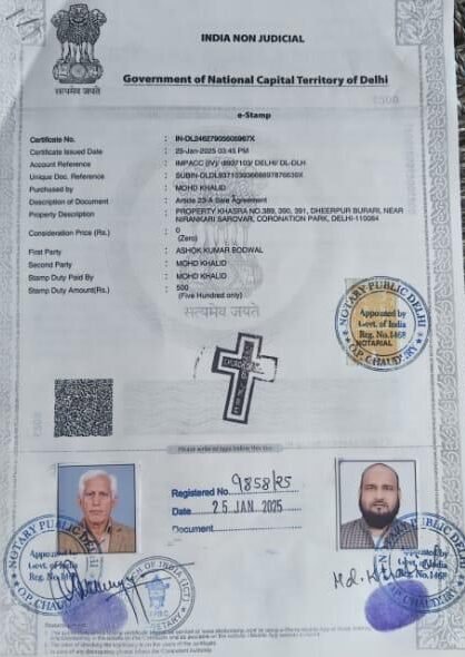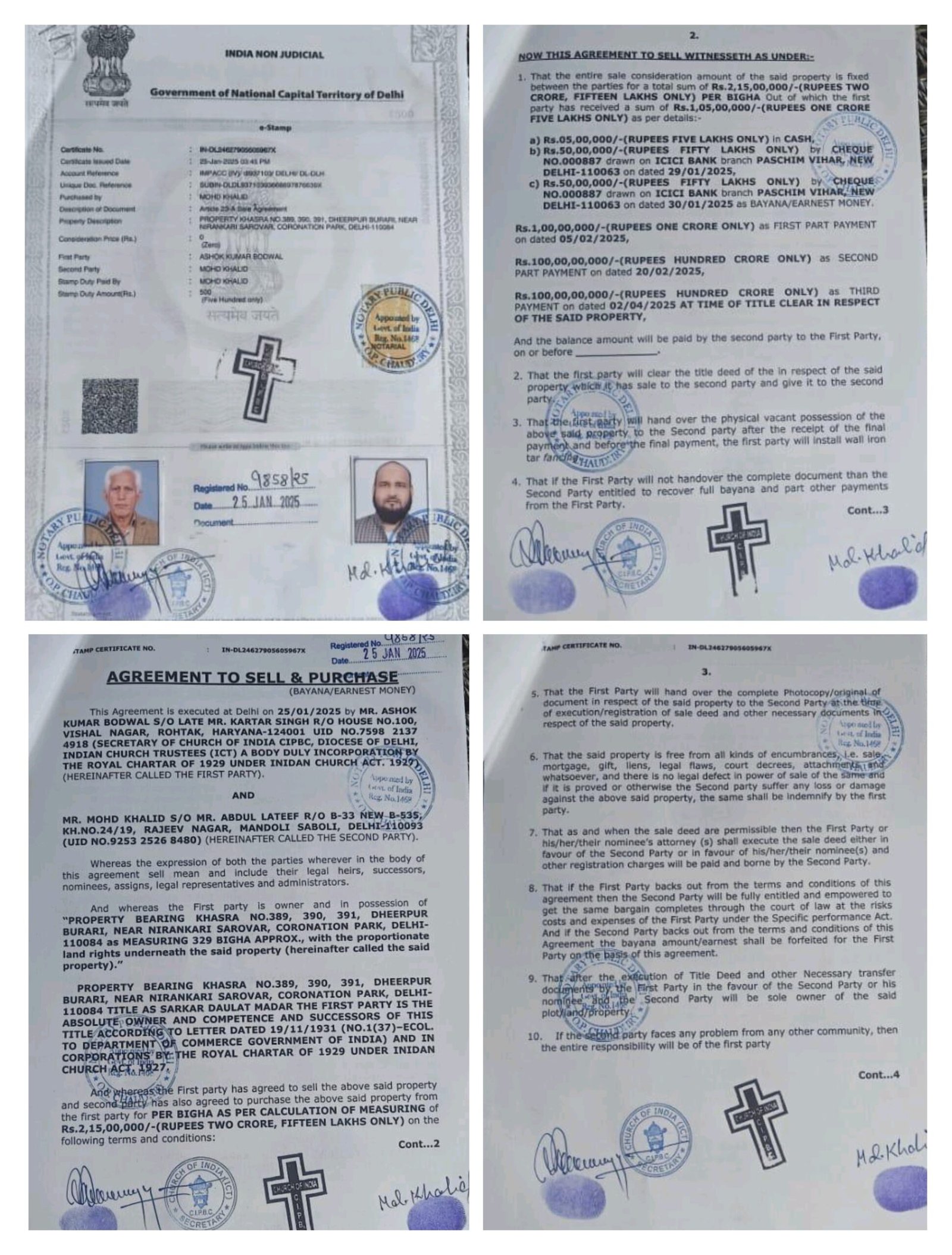 329 बीघा भूमि उत्तरी दिल्ली के धीरपुर-बुराड़ी क्षेत्र में स्थित है, और अनुबंध में कुल राशि ₹215 करोड़ अंकित है, जिसे तीन चरणों में भुगतान किया जाना था: पहला बयाना ₹2.15 करोड़, दूसरा ₹100 करोड़ 20 फरवरी 2025 तक, और तीसरा ₹100 करोड़ भूमि-शीर्षक भारमुक्त होने पर। इस विशाल राशि और भूमि का नियंत्रण केवल न्यासी बहुमत निर्णय, चरणबद्ध भुगतान और शपथीय प्रावधानों के माध्यम से ही सुनिश्चित किया जा सकता है। भू-माफिया नेटवर्क के संकेत अनुबंध की तकनीकी जटिलताओं में स्पष्ट हैं – फर्जी संस्था और कूटरचित दस्तावेज़ का उपयोग, चरणबद्ध भुगतान संरचना, शीर्षक सत्यापन प्रक्रिया, न्यासी मंडल का दो-तिहाई बहुमत अनिवार्यता और न्यायिक आदेश पर शपथीय उपस्थिति।