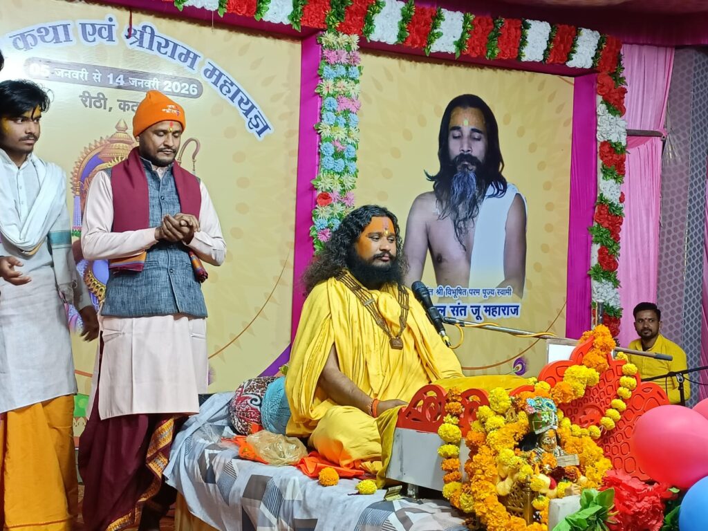 रीठी नगर के श्रीराम जानकी मंदिर प्रांगण में चल रही श्रीराम कथा के चौथे दिन गुरुवार को भगवान श्रीराम जन्मोत्सव बड़े ही धूमधाम व उत्साह के साथ मनाया गया। कथा व्यास महंत सीताराम शरण जी महाराज ने भक्तों को श्रीराम के जीवन चरित्र से अवगत कराया। कथा व्यास ने बताया कि दस इंद्रियों को रथ बनाने वाले को दशरथ कहा गया। धर्म, निष्ठा और उपासना उनकी तीन रानियां थीं। चौथा पन आने पर भी भगवान प्रकट नहीं हुए। संतों के मार्गदर्शन पर यज्ञ किया गया और खीर से भगवान का प्राकट्य हुआ।