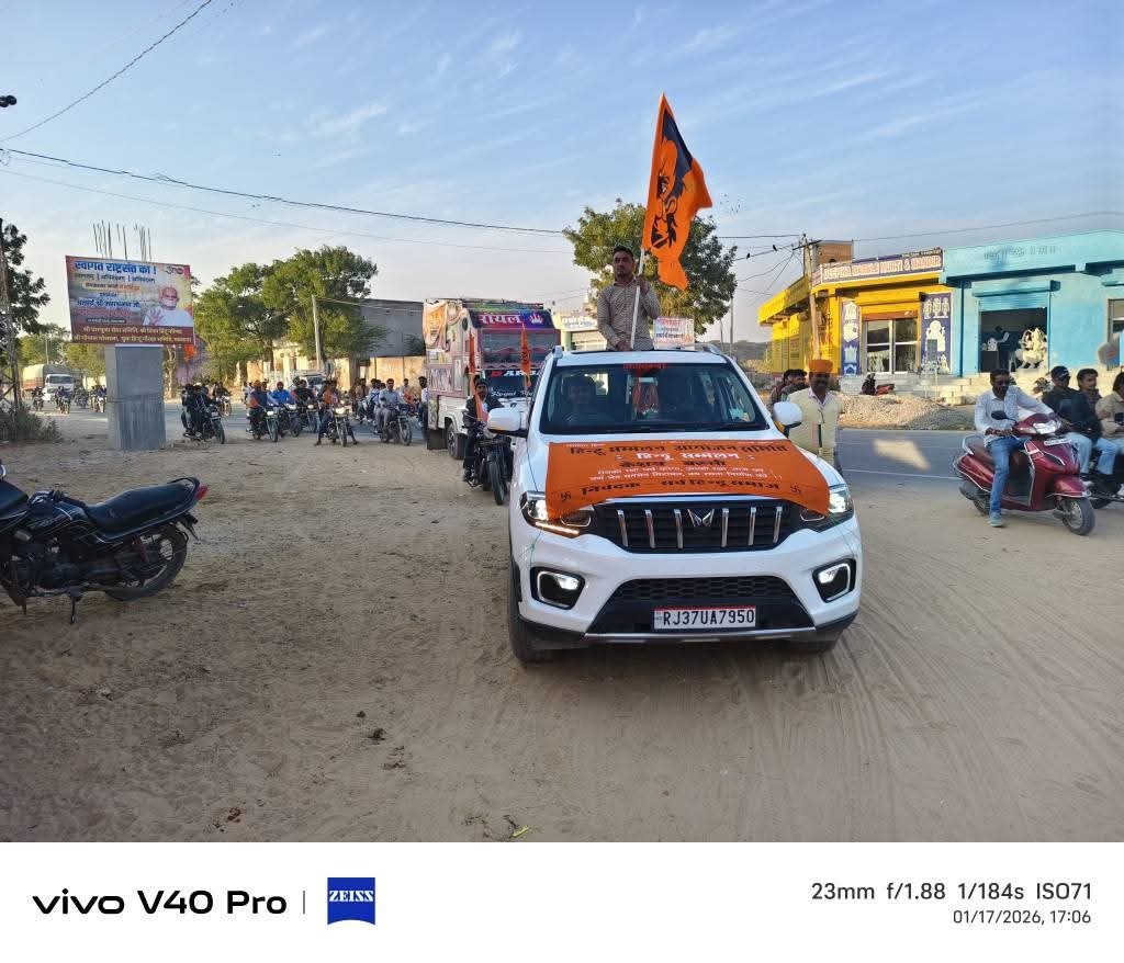 डीडवाना कुचामन जिले के मकराना शहर में विराट हिन्दू सम्मेलन आयोजन समिति, केशव बस्ती (मकराना) के तत्वावधान में डीजे के साथ मोटरसाइकिल एवं वाहन रैली का आयोजन किया गया। वाहन रैली में लोगों ने केसरिया साफा पहनकर शामिल हुए तथा अपने अपने वाहन पर केसरिया पताका लगाया हुआ था।