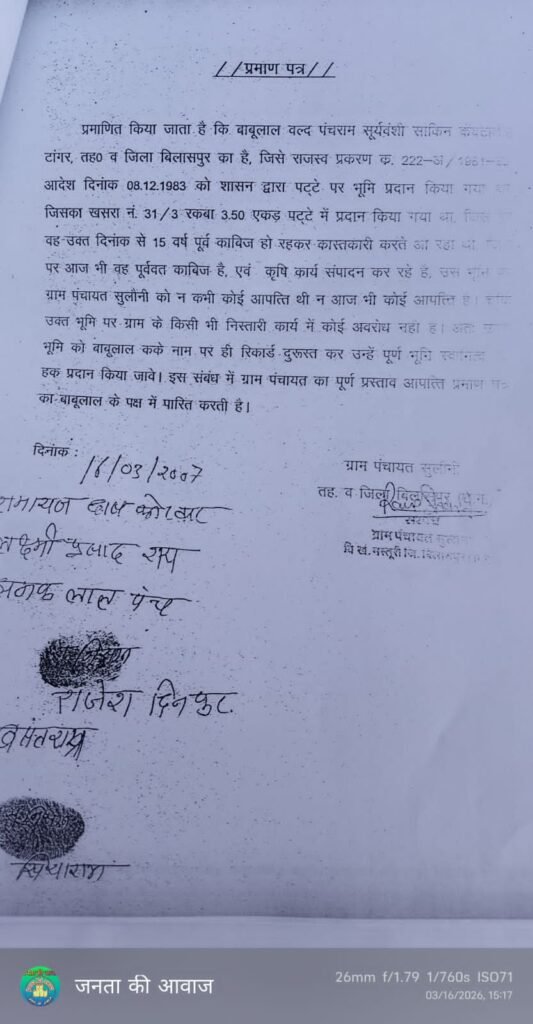 ग्रामीणों के अनुसार, गांव में करीब 3.30 एकड़ शासकीय जमीन को पटवारी शैलेन्द्र टंडन द्वारा डिजिटल हस्ताक्षर के माध्यम से बटांकन कर खसरा क्रमांक 31 को विभाजित कर 31/3 बनाया गया और उसे निजी व्यक्ति के नाम दर्ज कर दिया गया। जबकि इस जमीन से संबंधित राजस्व प्रकरण को दिनांक 31 अगस्त 1985 को तत्कालीन कलेक्टर न्यायालय, बिलासपुर द्वारा निरस्त घोषित किया जा चुका था।